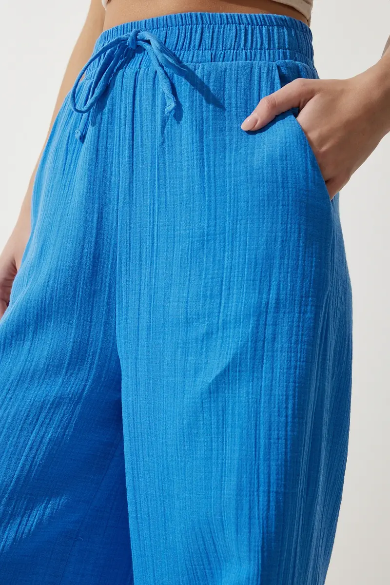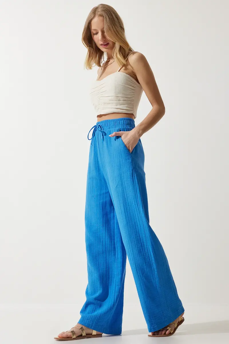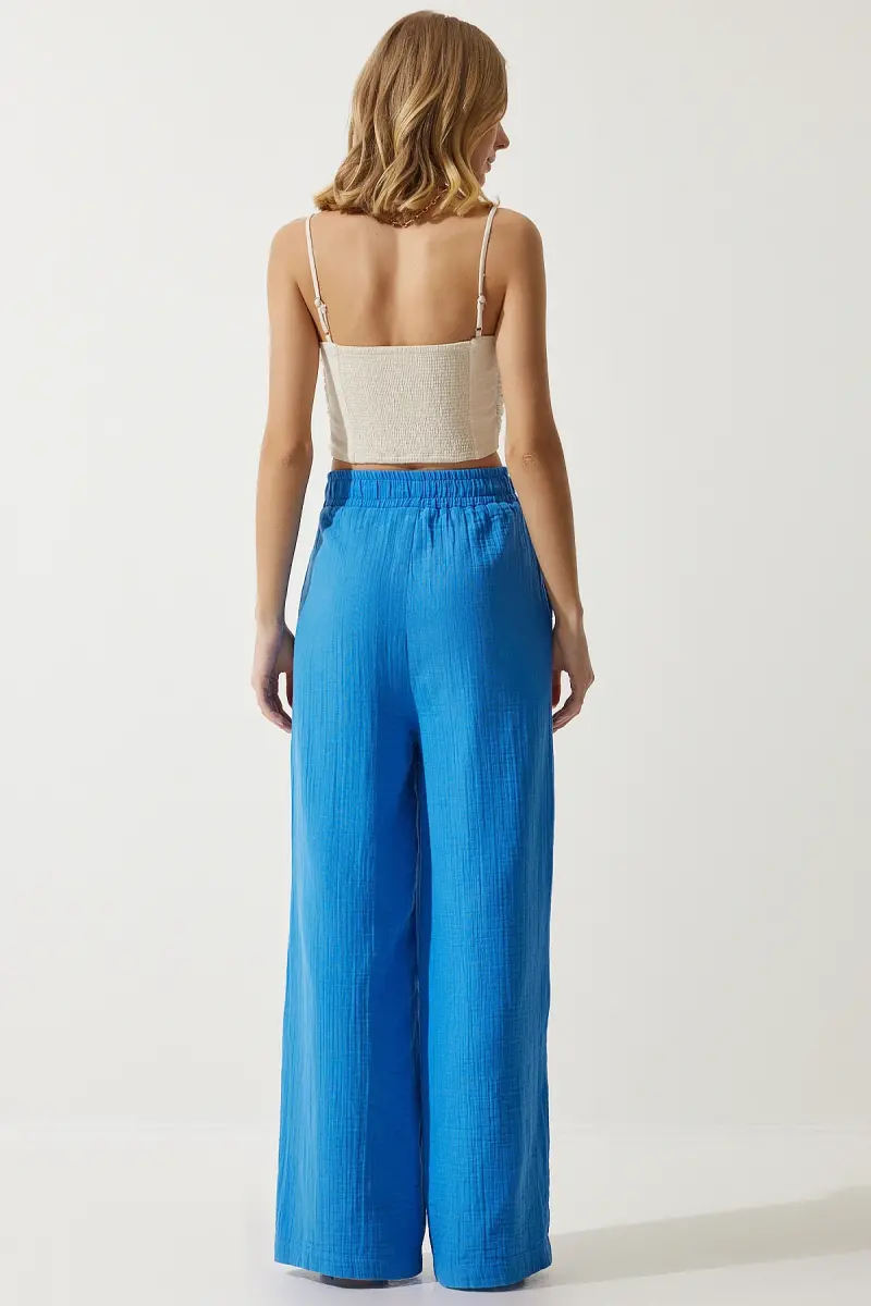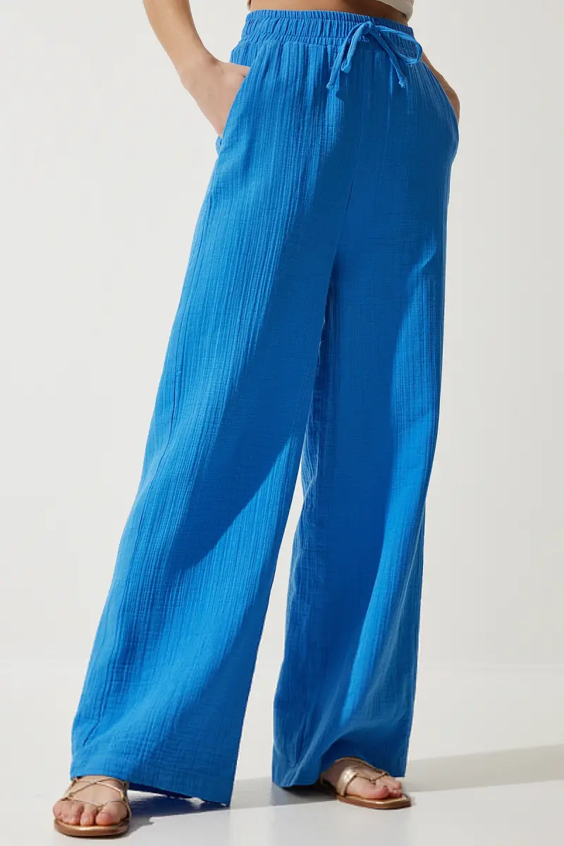 Bu ürün Trendyol tarafından gönderilecektir.Kampanya fiyatından satılmak üzere 50 adetten fazla stok sunulmuştur.Bir ürün, birden fazla satıcı tarafından satılabilir. Birden fazla satıcı tarafından satışa sunulan ürünlerin satıcıları ürün için belirledikleri fiyata, satıcı puanlarına, teslimat statülerine, ürünlerdeki promosyonlara, kargonun bedava olup olmamasına ve ürünlerin hızlı teslimat ile teslim edilip edilememesine, ürünlerin stok ve kategorileri bilgilerine göre sıralanmaktadır.Bu üründen en fazla 10 adet sipariş verilebilir. 10 adedin üzerindeki siparişleri Trendyol iptal etme hakkını saklı tutar. Belirlenen bu limit kurumsal siparişlerde geçerli olmayıp, kurumsal siparişler için farklı limitler belirlenebilmektedir.15 gün içinde ücretsiz iade. Detaylı bilgi için [page="return_conditions"]tıklayın .Yumuşak dokusu ve rahat kesimi ile her yaş grubuna hitap eden mavi müslin palazzo pantolon, günlük kullanım için idealdirLastikli bel tasarımı sayesinde konforlu bir oturuş sunar ve hareket özgürlüğü sağlarYan cepleri ile pratik kullanım imkanı verirken, şık görünümüyle dikkat çekerDüz deseni ve mavi rengiyle kolayca kombinlenebilirher türlü üst giyimle uyum sağlarMüslin dokuma tipi, nefes alabilir yapısıyla gün boyu rahatlık sunarBol paça tasarımı modern ve trend bir görünüm kazandırırken, şıklığınızla fark yaratmanızı sağlar