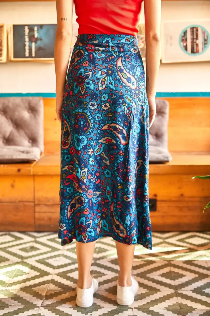 Kadın Mavi Pastel Fermuarlı Yanı Yırtmaçlı Viskon Etek ETK-19000152-Mavi Pastel