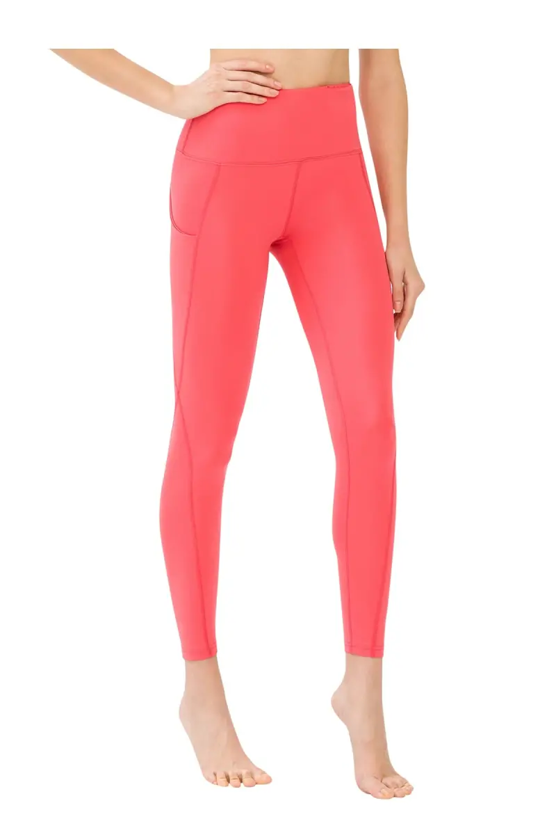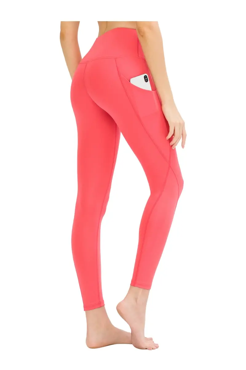 Kadın Mercan Kemerli Yüksek Bel Çift Cepli Toparlayıcı Spor Tayt-Mercan