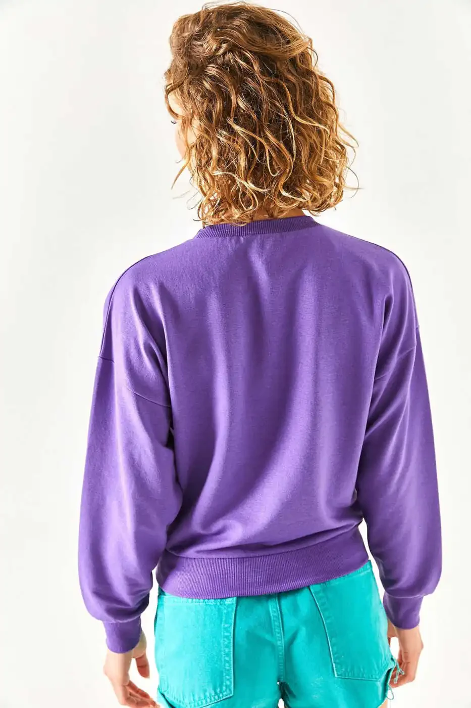 Günlük kullanıma uygun, rahat ve şık tasarımıyla göz kamaştırıcı mor cep detaylı sweatshirt, vazgeçilmez parçalarınızdan biri olacak.