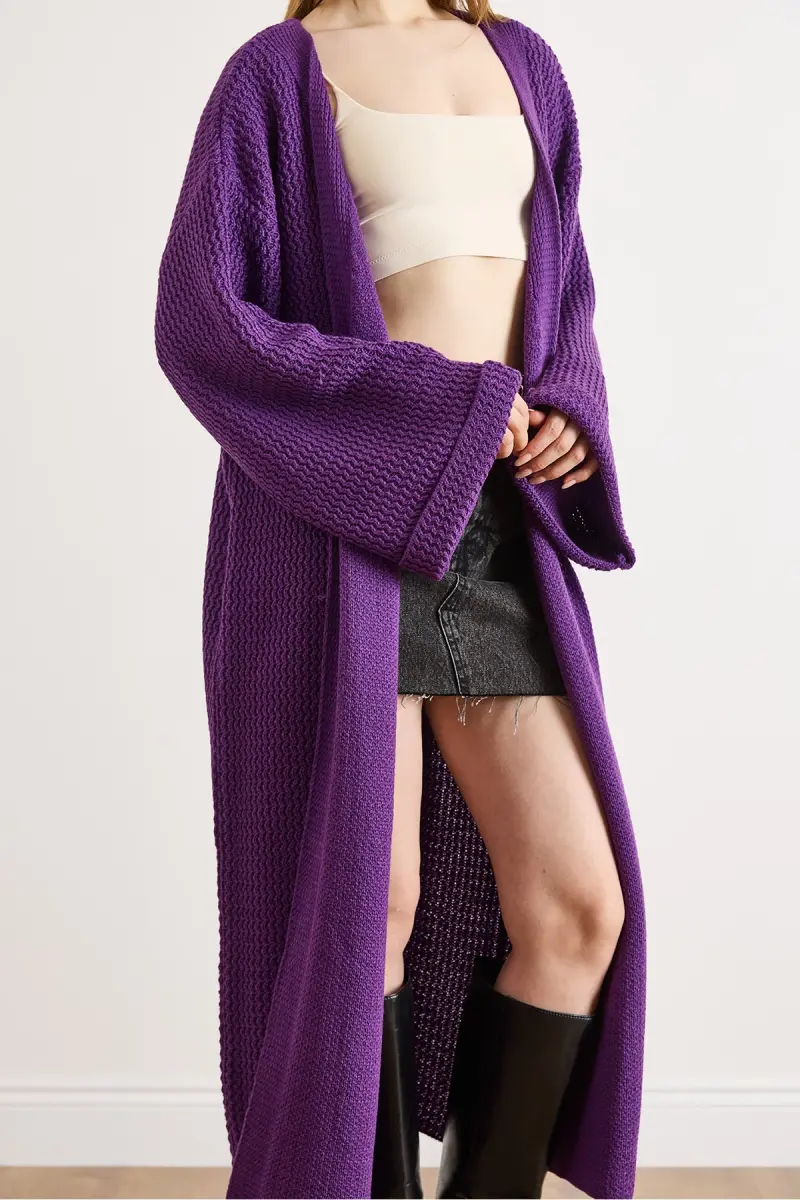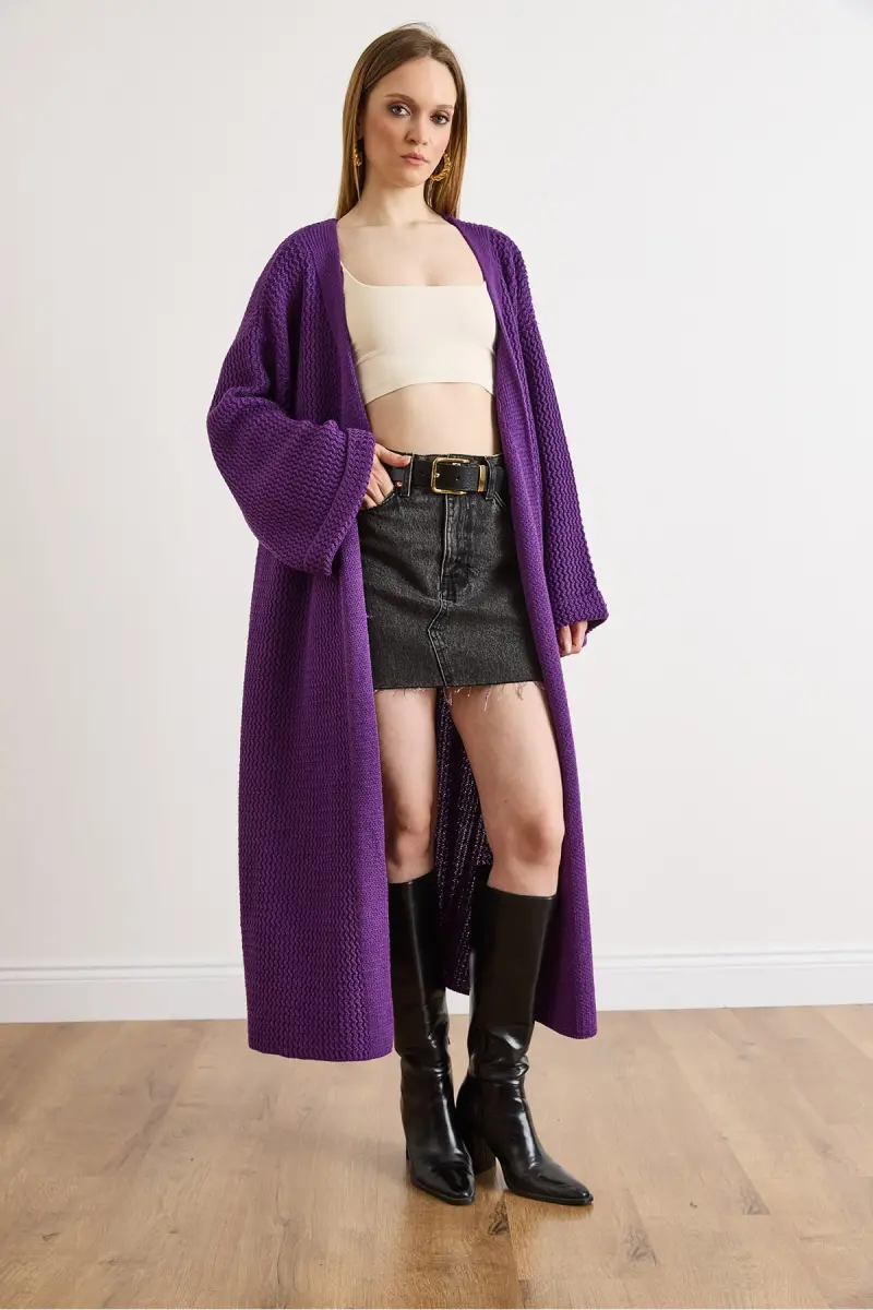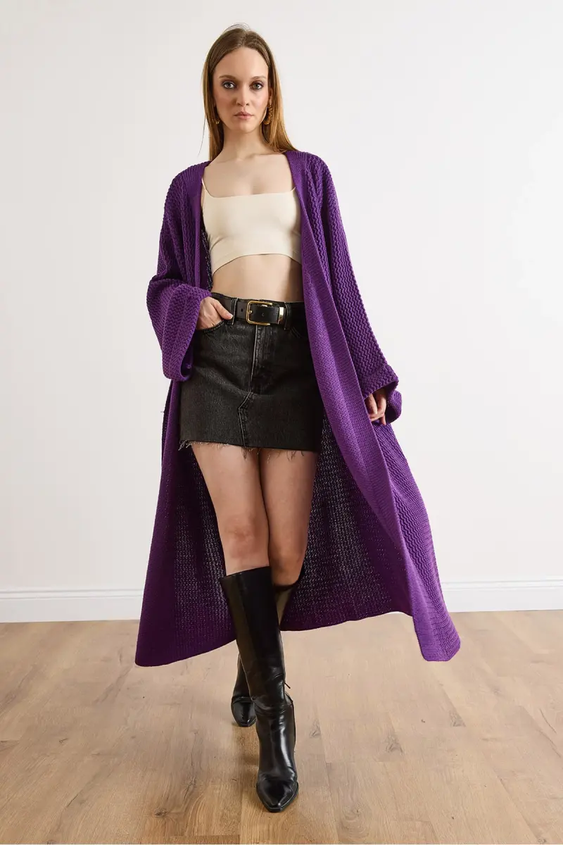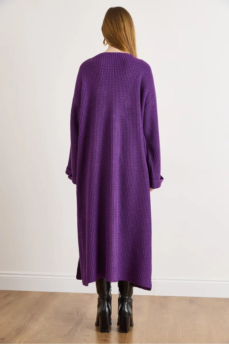 Kadın Mor Manşeti Katlamalı Maxi Triko Hırka HRK-19000297-Mor