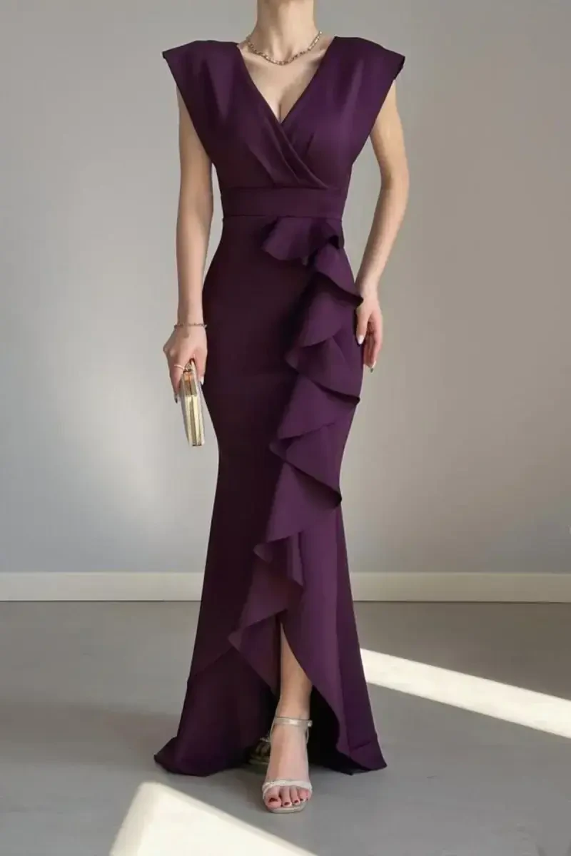 Ushbu ajoyib binafsha rangli kechki libos nafislik va qulaylikni birlashtirgan maxsus dizaynga ega. Scuba sho'ng'in matosining elastikligi tufayli u tanaga mukammal tarzda mos tushadi va kun bo'yi qulay foydalanishni ta'minlaydi. O'ralgan yoqa dekolteni nozik tarzda ta'kidlab, ayollik ko'rinishini beradi, volanli etak dizayni esa libosga harakat va dinamizm qo'shadi. Binafsha rangning olijanob va jozibali ohangi har qanday muhitda e'tiborni tortadi, kechki libos bichimi esa nafosatingizni oldinga chiqaradi. Libosning detallariga e'tibor uning sifati bilan birlashib, sizga unutilmas tajriba taqdim etadi. Agar siz bitiruv kechasida, nikoh to'yida yoki maxsus ziyofatda ko'zni qamashtirmoqchi bo'lsangiz, bu libos aynan siz uchun. Ham zamonaviy, ham klassik chiziqlarni o'zida mujassam etgan ushbu dizaynni turli xil aksessuarlar va poyabzallar bilan osongina uyg'unlashtirish mumkin. Xoh baland poshnali poyabzallar bilan nafis ko'rinishga erishing, xoh sandaletlar bilan yanada qulay uslub yarating, bu libos har doim sizga hamroh bo'ladi. O'zingizni maxsus his qilish va uslubingizni aks ettirish uchun ushbu noyob kechki libosni tanlang.