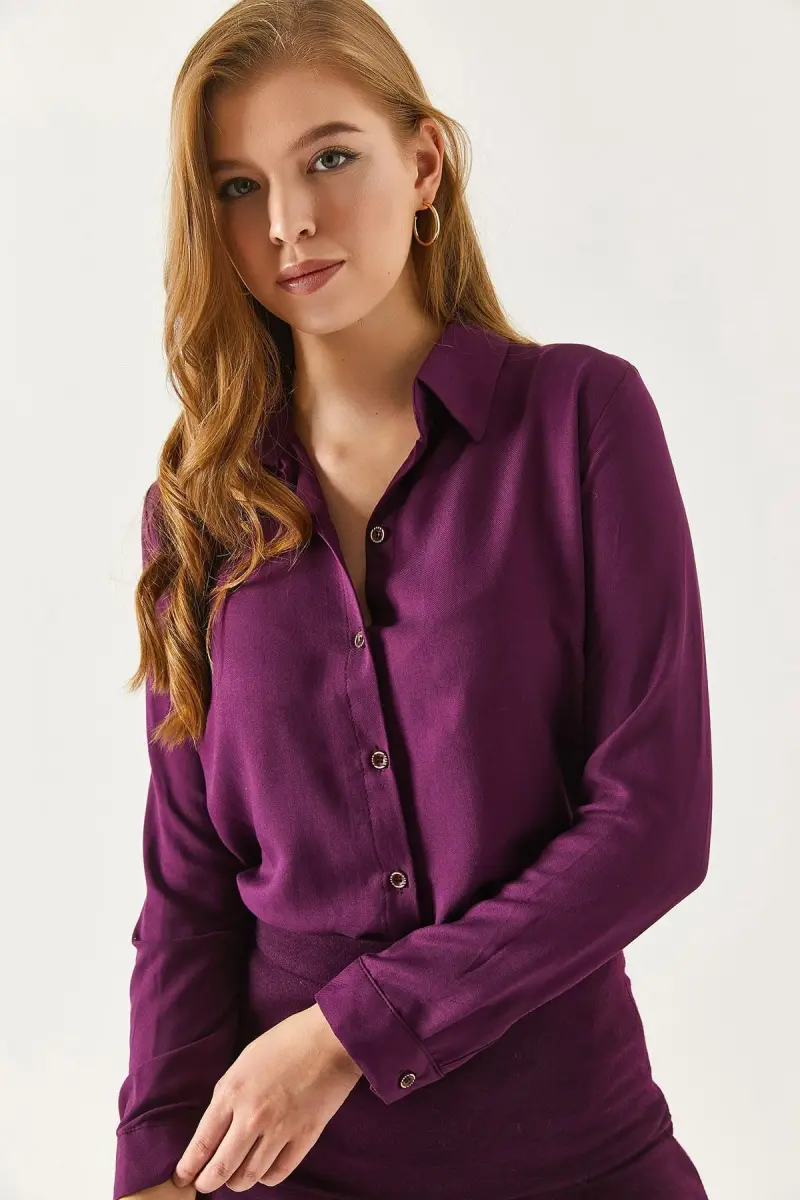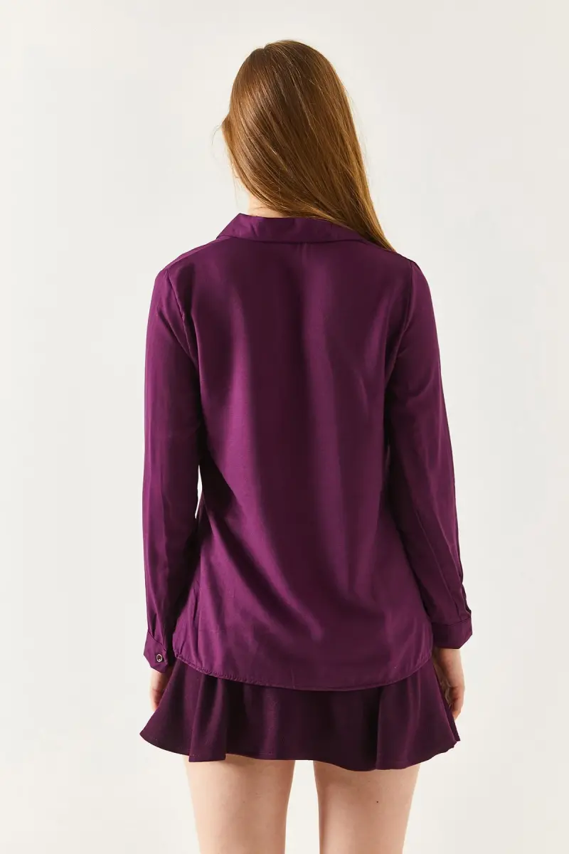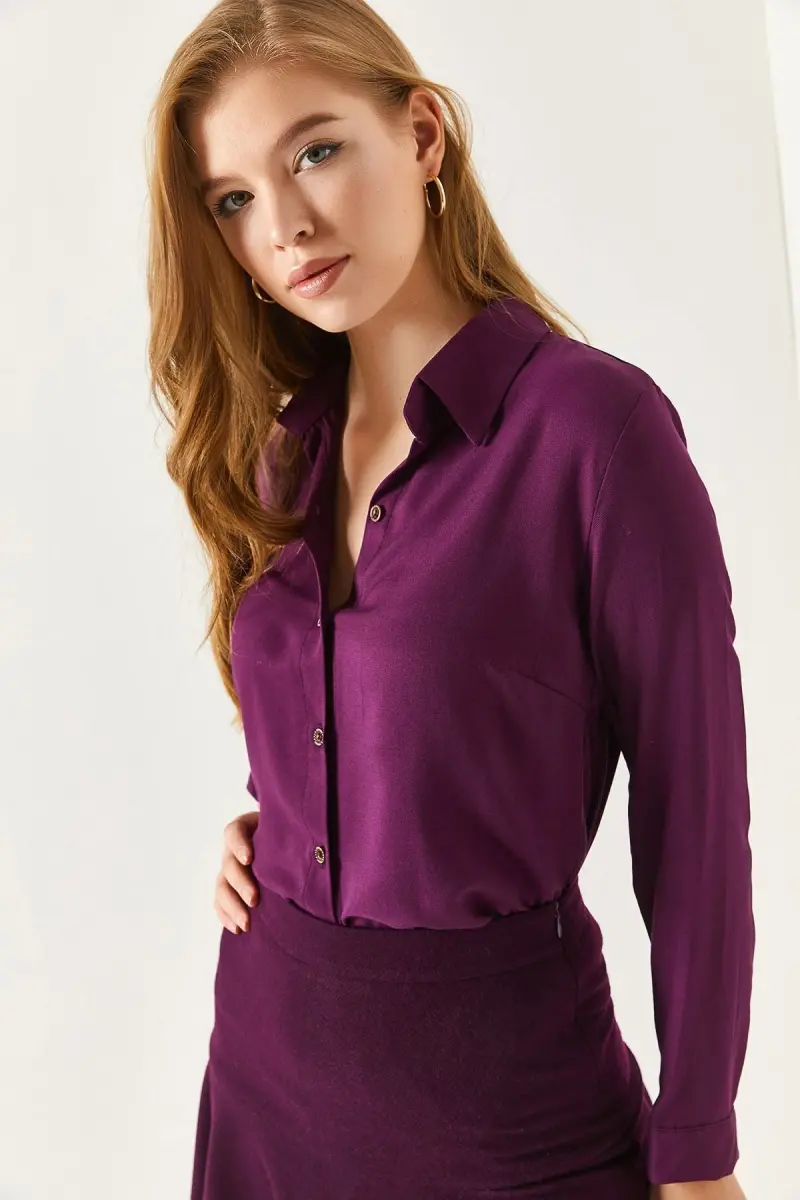 Kadın Mürdüm Uzun Kollu Düz Gömlek ARM-18Y001176-MÜRDÜM