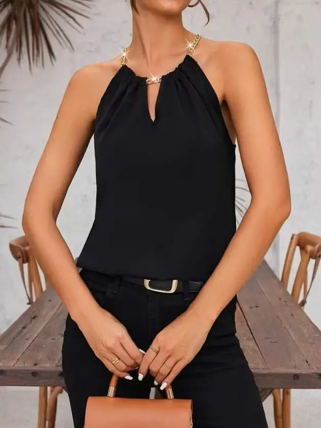 Kadın Omuzlardan Açık Zincir Halka Detaylı Sandy BluzModelin Ölçüleri: Boy: 165, Kg: 55, Göğüs: 90, Bel: 72, Kalça: 100Modelin üzerindeki ürün M/38 bedendirDESEN-DiğerleriKALIP-Boyundan Bağlamalı