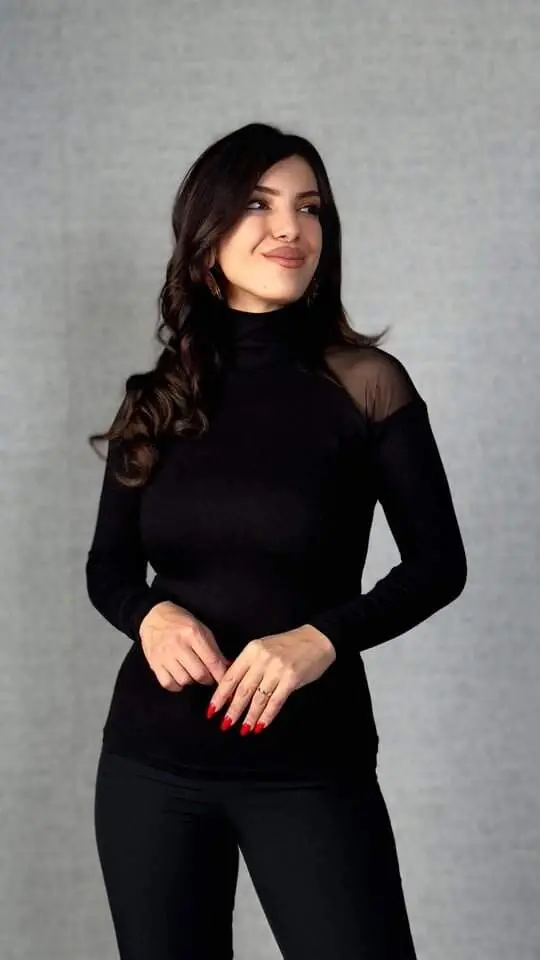 Kadın Omuzları Tül Balıkçı Yaka Viskon Kumaş BluzModelin Ölçüleri: Boy: 165, Kg: 55, Göğüs: 90, Bel: 72, Kalça: 100Modelin üzerindeki ürün M/38 bedendir