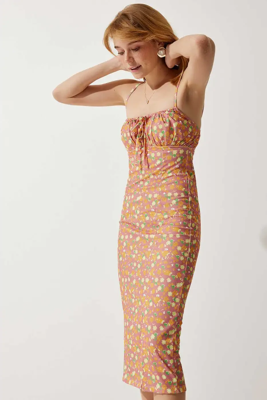 Meet the Women's Orange Pink Floral Slit Summer Knitted Dress that brings together the energy and elegance of summer! This eye-catching dress offers both comfort and a stylish look in warm weather. The vibrant orange and pink floral patterns add energy to the dress, while the slit detail creates a modern and attractive look. The light and breathable knit fabric provides all-day comfort, while the fitted cut creates a chic silhouette. Whether you prefer it for daily use or special occasions, this dress is a candidate to be an indispensable part of your wardrobe.Product DescriptionThe Women's Orange Pink Floral Slit Summer Knitted Dress has a striking and stylish design that reflects the warm and energetic atmosphere of summer. The vibrant colors and floral patterns of the dress help you create a positive atmosphere in any environment, while the slit detail offers a feminine and modern look. The lightness and breathability of the knit fabric ensure that you stay comfortable all day long, even in hot weather. The cut of the dress gently emphasizes your body lines and creates a stylish silhouette. This versatile dress can be easily preferred for daily use as well as special occasions. You can create different styles by combining it with sandals, espadrilles or heels. Complete your combination with a stylish hat and sunglasses and enjoy the summer. The dress is made of high quality materials and is designed for long-lasting use. It is important to follow the appropriate care instructions to maintain the vibrancy of its colors and the shape of its fabric. The Women's Orange Pink Floral Slit Summer Knitted Dress will be one of the most loved pieces of your summer wardrobe and will make you feel special every time you wear it. Carry the energy and elegance of summer with this dress!Product Features* Vibrant orange and pink floral patterns* Stylish slit detail* Lightweight and breathable knit fabric* Body-hugging fit* Comfortable and convenient to use* Suitable for daily and special occasions* High quality material* Stylish and feminine design* Easy to combine* Ideal for summer useAdditional InformationThe size on the model is S/36. Product content is 100% acrylic. It is recommended to follow the washing instructions on the label for long-lasting use of the product. Colors may vary depending on your screen settings.