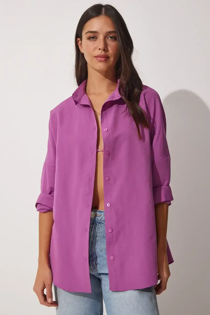 Oversize хлопковая рубашка | Базовая рубашка с длинными рукавами и пуговицами