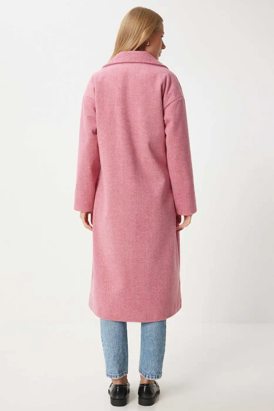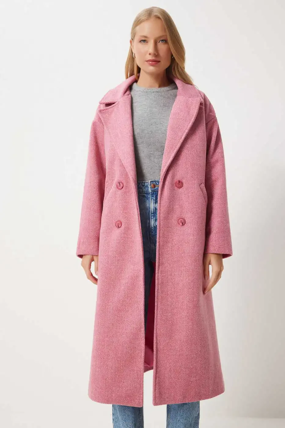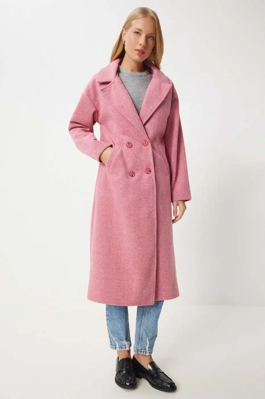 The Women's Pink Double-Breasted Cashmere Coat has a special design that combines elegance and comfort. Its pink color offers a feminine and elegant look, while the double-breasted collar detail adds a modern touch to the coat. The cashmere fabric that will keep you warm in cold weather provides comfort all day long with its soft texture. The coat's cut creates a stylish silhouette with its fitted structure. This coat, which you can easily use in both your daily combinations and special invitations, is a candidate to be one of the most loved pieces of your wardrobe. The double-breasted collar detail can be easily combined with different accessories, while the pink color helps you create a lively and energetic style. The inner lining of the coat increases wearing comfort, while the high-quality cashmere fabric on the outer surface offers long-lasting use. Button details add an elegant touch to the coat, while functional pockets offer practical use. The Women's Pink Double-Breasted Cashmere Coat is an ideal choice for women who want to be both stylish and protected from the cold. With this coat, you will attract attention in every environment you enter and make a difference with your style. This coat, which will be indispensable in winter months, will not only keep you warm but also highlight your elegance. This coat, which can adapt to both classic and modern styles, allows you to always achieve a different look by using it with different combinations. Whether you create a sporty style with jeans or a more stylish look with a skirt and heels, the Women's Pink Double-Breasted Cashmere Coat will always add a perfect touch to your style. Discover this coat, which will be indispensable in your wardrobe, immediately and take your elegance to the next level. Remember, this coat is not just a piece of clothing, it is also a style statement. Choose the Women's Pink Double-Breasted Cashmere Coat to feel special and reflect your style. This coat will increase not only your appearance but also your self-confidence. This coat, which contains care and quality in every detail, will be one of the most valuable pieces of your wardrobe for many years.