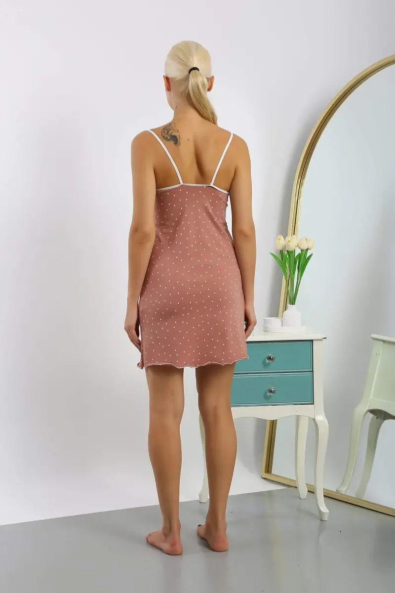 Ayollarga mo'ljallangan, ko'krakli, nuqta naqshlari tushirilgan 36719 raqamli paxtadan tikilgan tungi ko'ylak