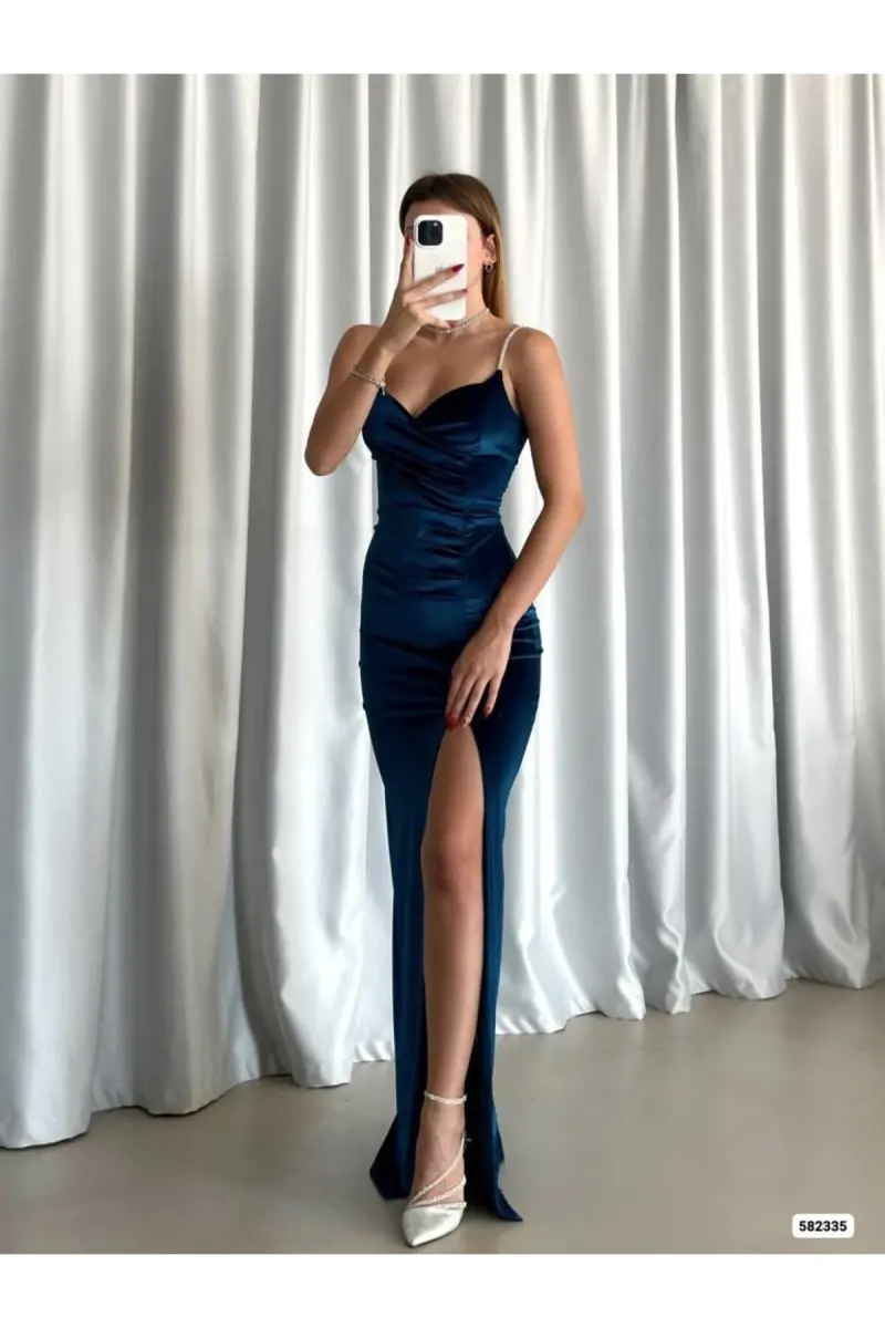 Bu ürün Wost tarafından gönderilecektir.Kampanya fiyatından satılmak üzere 5 adetten fazla stok sunulmuştur.Bir ürün, birden fazla satıcı tarafından satılabilir. Birden fazla satıcı tarafından satışa sunulan ürünlerin satıcıları ürün için belirledikleri fiyata, satıcı puanlarına, teslimat statülerine, ürünlerdeki promosyonlara, kargonun bedava olup olmamasına ve ürünlerin hızlı teslimat ile teslim edilip edilememesine, ürünlerin stok ve kategorileri bilgilerine göre sıralanmaktadır.Bu üründen en fazla 10 adet sipariş verilebilir. 10 adedin üzerindeki siparişleri Trendyol iptal etme hakkını saklı tutar. Belirlenen bu limit kurumsal siparişlerde geçerli olmayıp, kurumsal siparişler için farklı limitler belirlenebilmektedir.15 gün içinde ücretsiz iade. Detaylı bilgi için [page="return_conditions"]tıklayın .Zarif ve şık tasarımıyla dikkat çeken bu abiye elbise, özel günlerinizde göz alıcı bir görünüm sunarYırtmaç detayı sayesinde hem modern hem de feminen bir siluet oluştururken, hareket özgürlüğü sağlarSlim fit kalıbı ile vücut hatlarınıza mükemmel uyum sağlayarak zarif bir duruş sergilerDüz deseniyle sade ve şık bir görünüm sunan bu elbise, her türlü aksesuarla kolayca kombinlenebilirTüm yaş gruplarına hitap eden tasarımıyla geniş bir kullanıcı yelpazesine sahiptirherkes için idealdirMaxi boyu ile asil ve uzun bir görünüm kazandırırken, askılı kol tipi omuzları zarifçe ortaya çıkarırKadife dokuma tipi kumaşı sayesinde lüks ve pürüzsüz bir dokunuş hissi verirken, likra materyali esneklik sunarDegaje yaka tasarımı ile dekolte bölgesini sofistike bir şekilde vurgular ve boyun hattını uzun gösterir