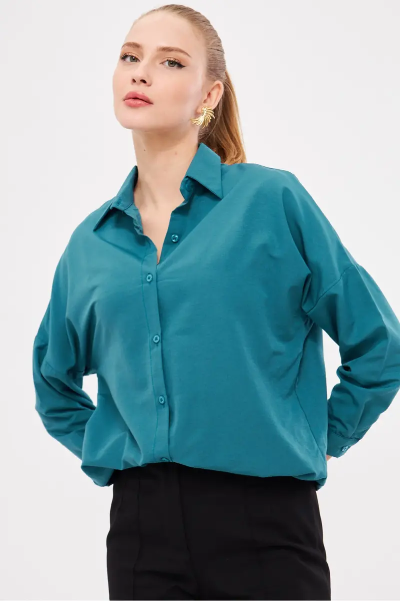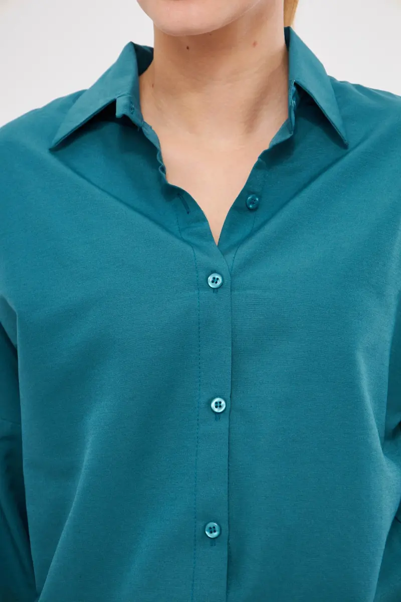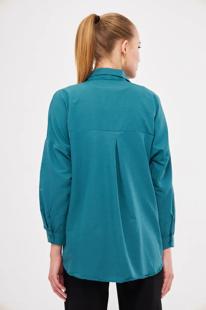 Kadın Petrol Oversize Uzun Basic Gömlek ARM-22Y001118-Petrol