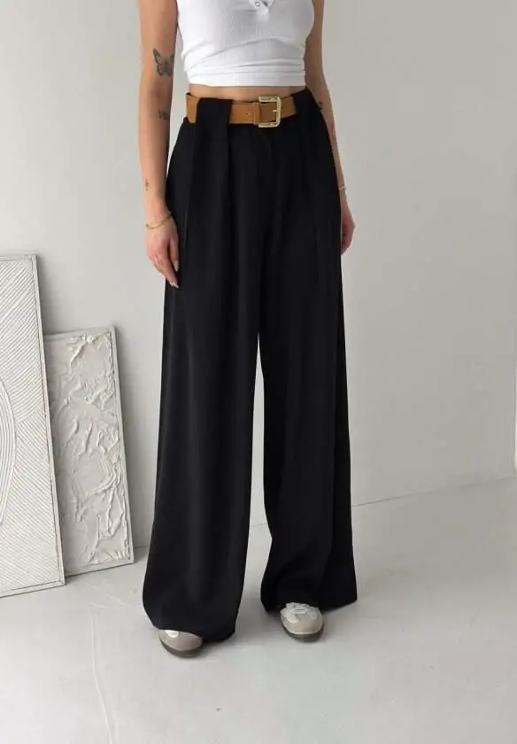 Kadın Pileli Kemerli PantolonModelin Ölçüleri: Boy: 165, Kg: 55, Göğüs: 90, Bel: 72, Kalça: 100Modelin üzerindeki ürün M/38 bedendir
