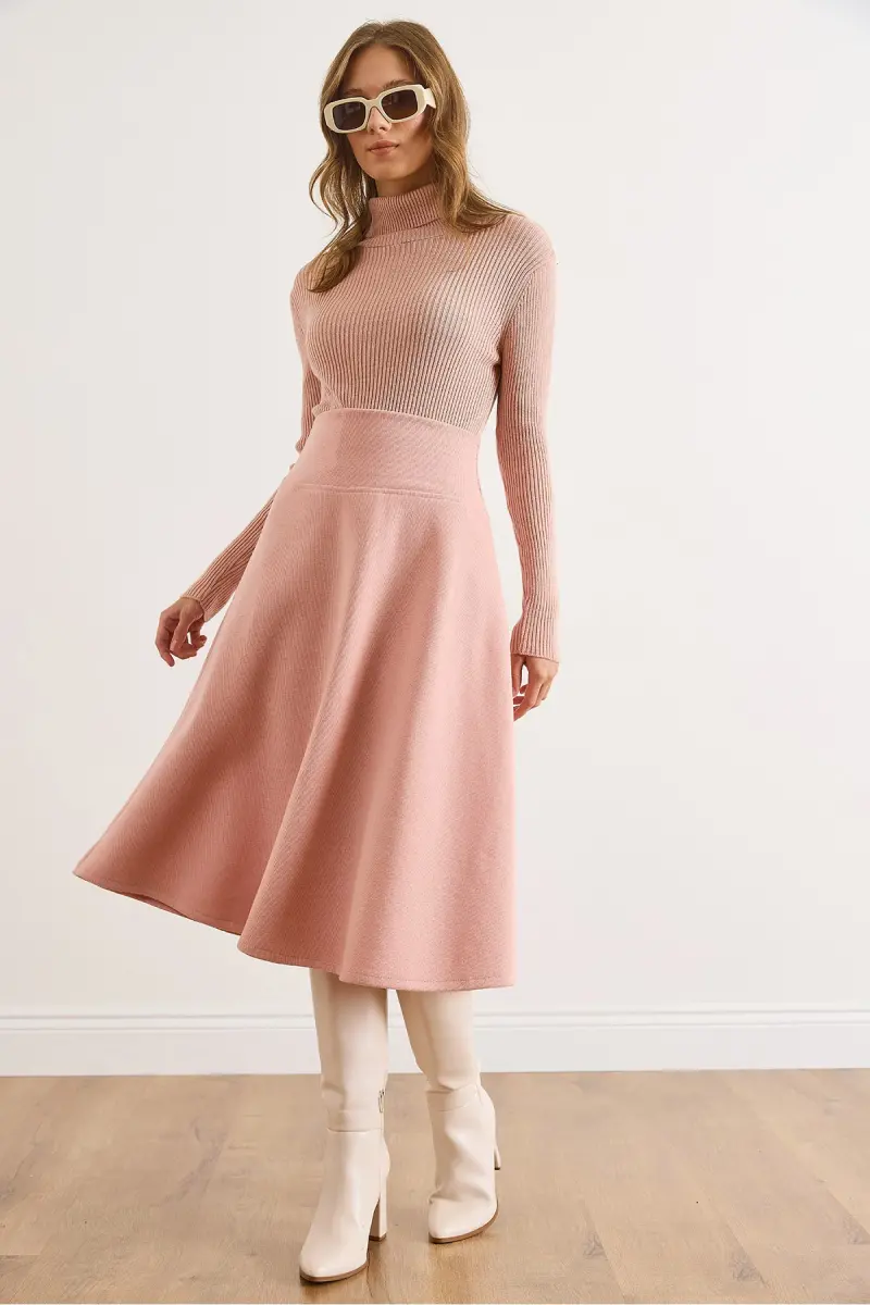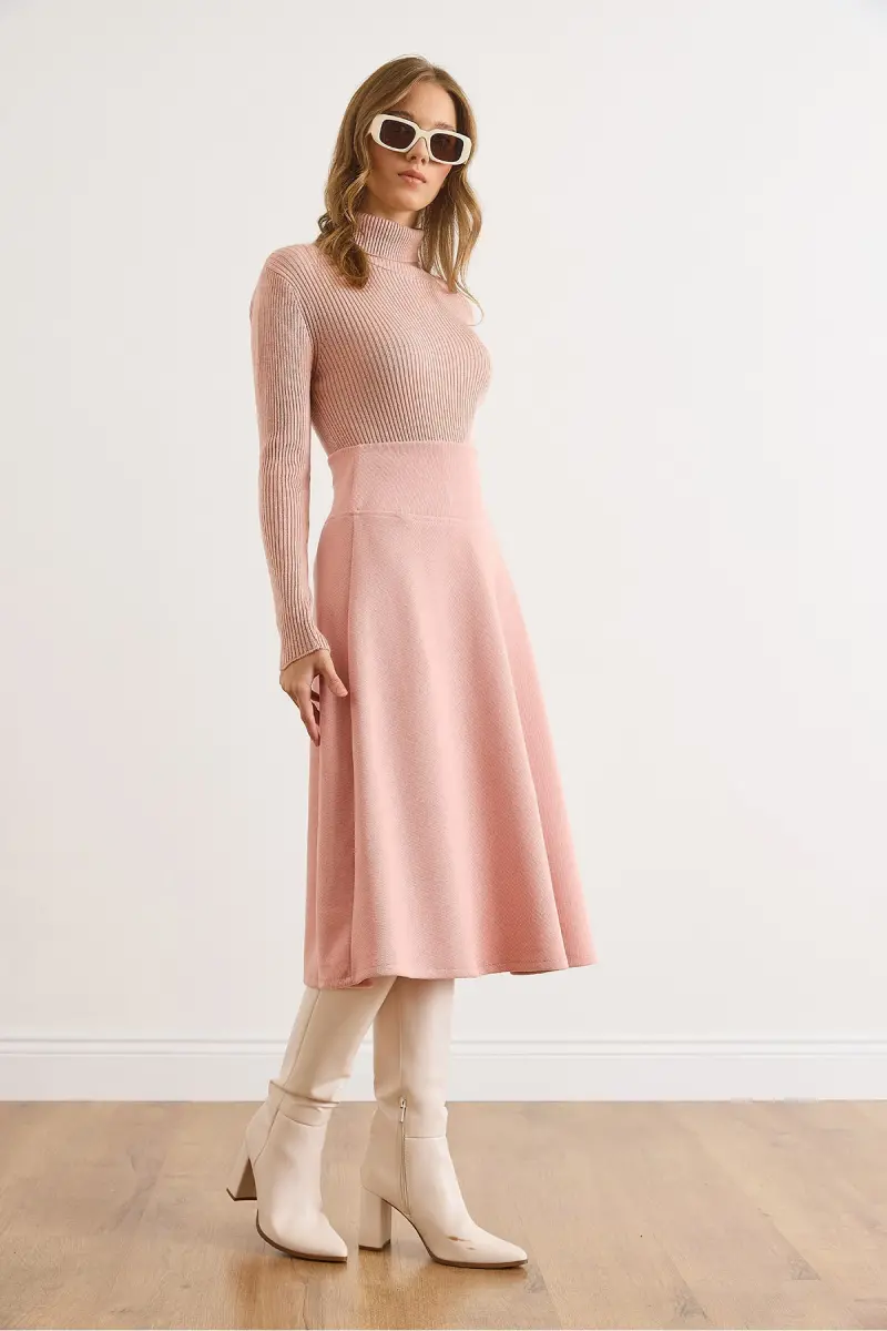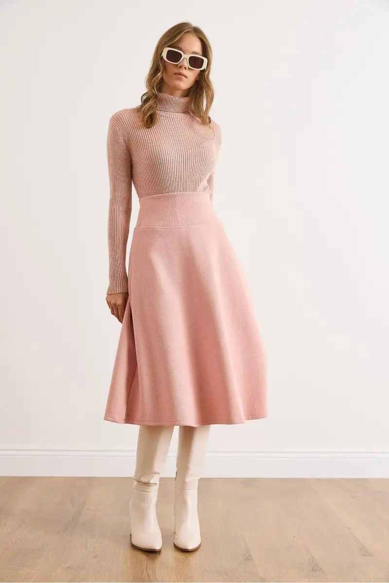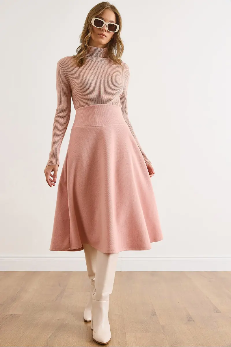 Kadın Pudra Beli Bantlı Selanik Çan Etek ETK-19000297-Pudra