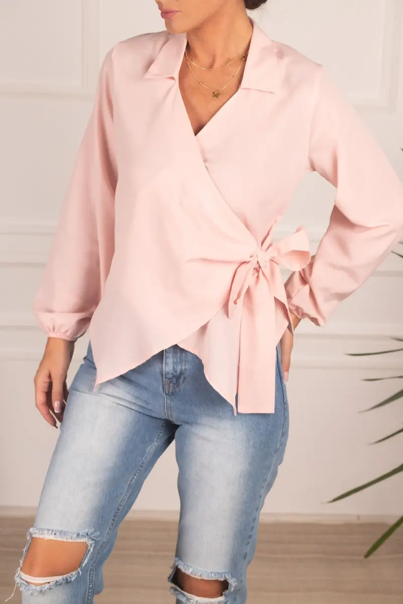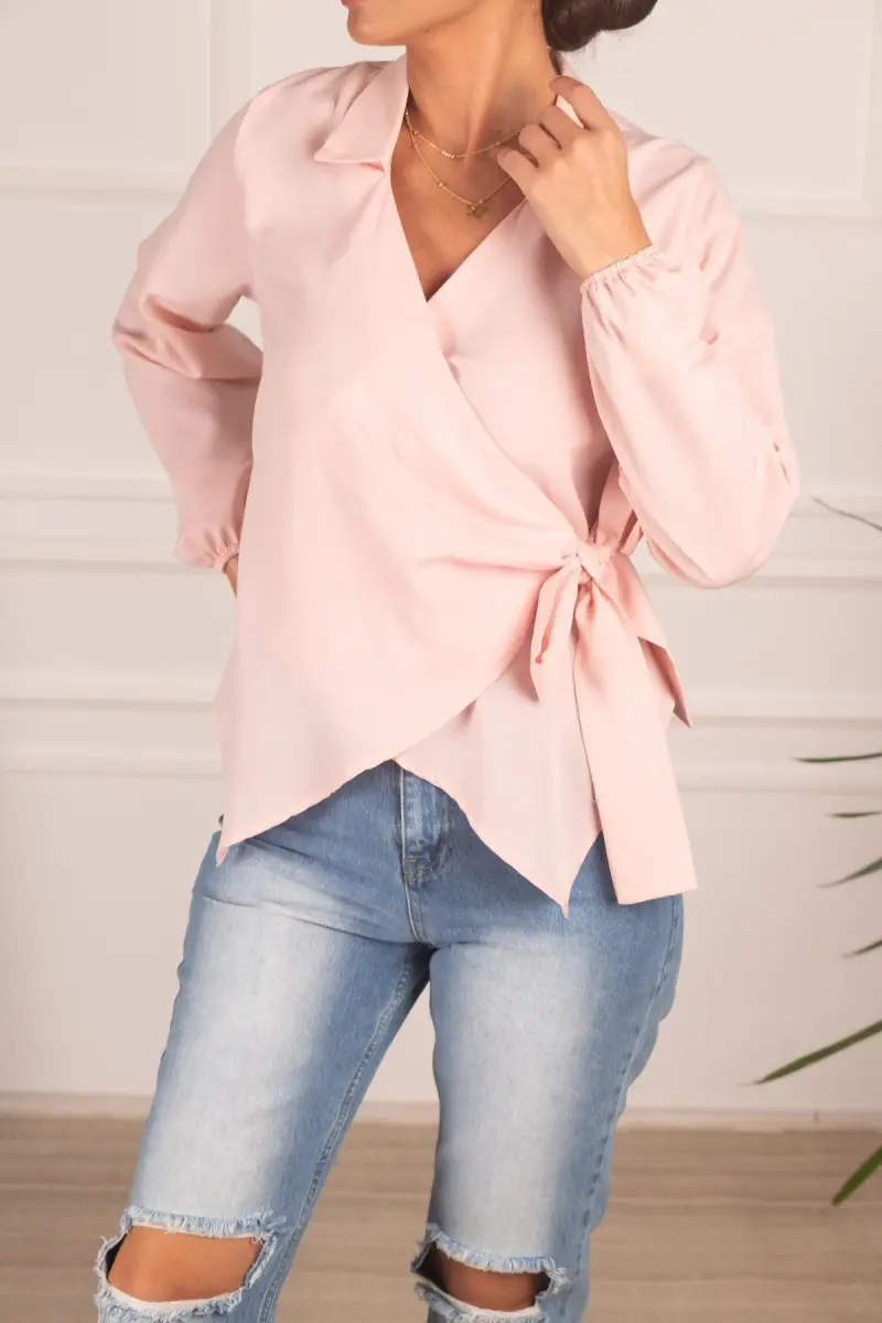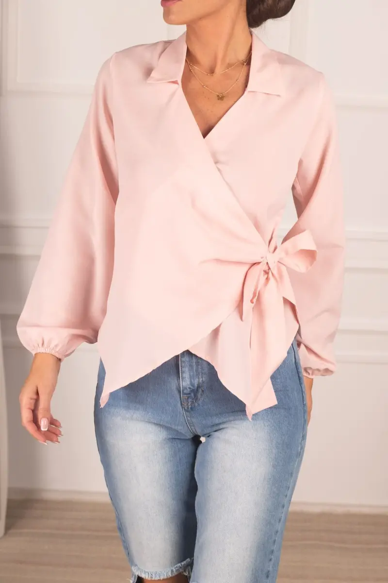 Kadın Pudra Yakalı Kruvaze Bluz ARM-22Y024025-Pudra
