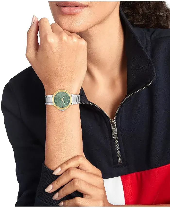 Tommy Hilfiger kadın saat koleksiyonunun bu zarif üyesi, modern tasarım ve günlük kullanım rahatlığını mükemmel bir şekilde bir araya getiriyor. Women's Quartz Silver-Tone Stainless Steel Bracelet Watch, 34mm modeli, şıklığı ve fonksiyonelliği bir arada arayan kadınlar için ideal bir seçimdir. Saatin dikkat çekici özelliklerinden biri, entegre bileziği ve T-bar yapısıdır. Bu tasarım, saate modern ve sofistike bir görünüm kazandırırken, aynı zamanda bilekte rahat bir kullanım sunar. Dokulu kadranı, saate derinlik ve karakter katarken, uygulanan indeksler zamanı kolayca okumanızı sağlar. Tommy Hilfiger'ın ikonikleşmiş şerit detayı, dakika kolunda kendini gösterir ve markanın özgün tarzını yansıtır. Bu detay, saate sportif bir dokunuş eklerken, aynı zamanda şıklığından ödün vermemesini sağlar. Gerek günlük kullanımda gerekse özel günlerde kıyafetlerinizi tamamlayacak bu saat, tarzınızı yansıtmanıza yardımcı olacaktır. Paslanmaz çelik kasası ve bileziği, saatin uzun ömürlü olmasını sağlarken, gümüş tonu her türlü kıyafetle kolayca uyum sağlar. 34mm kasa çapı, saatin bilekte zarif ve dengeli durmasını sağlar. Bu saat, sadece zamanı göstermekle kalmaz, aynı zamanda stilinizi de tamamlar. İster ofiste, ister arkadaşlarınızla buluşurken, ister özel bir davette olun, Tommy Hilfiger'ın bu şık saati her zaman göz alıcı bir aksesuar olacaktır. Tommy Hilfiger Women's Quartz Silver-Tone Stainless Steel Bracelet Watch, 34mm ile her an stil sahibi olmanın keyfini çıkarın. Bu saat, sadece bir zaman ölçer değil, aynı zamanda bir moda ifadesidir. Kendinizi özel hissetmek ve tarzınızı ön plana çıkarmak için mükemmel bir seçimdir. Günlük hayatınızın her anında size eşlik edecek, şıklığınızı tamamlayacak ve stilinizi yansıtacak bu saat, gardırobunuzun vazgeçilmez bir parçası olacak. İkonik detayları ve modern tasarımıyla, bu saat her zaman dikkatleri üzerinize çekecek ve tarzınızla fark yaratmanızı sağlayacaktır.