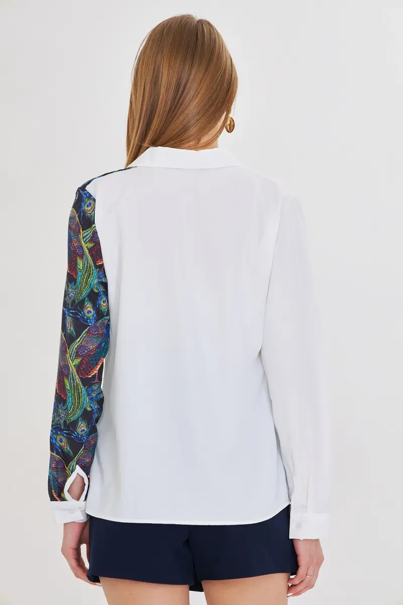 Kadın Saks Asimetrik Desenli Gömlek ARM-25Y001011-Saks