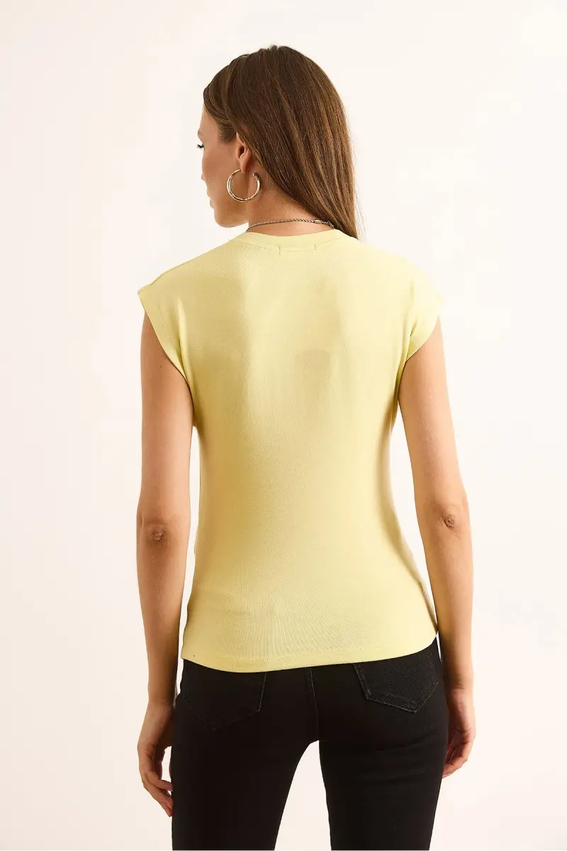 Kadın Sarı Yarasa Yumuşak Dokulu Esnek Bluz BLZ-19002877-Sarı