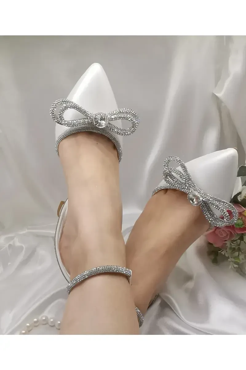 Designed with an elegant and enchanting touch, you will feel like the heroine of a fairy tale on your special day with the Women's Pearl Ivory 7 Cm Cone Heel Stone Bow Stiletto Wedding Shoe - SEDEF BEYAZ. This unique shoe will be the most stylish complement to your wedding dress and will highlight your elegance with every step.**Product Description**The Pearl Ivory color adds a romantic and timeless feel to this stiletto, while the 7 cm cone heel offers both comfortable use without sacrificing your elegance, and adds an elegant lift to your posture. The stone bow detail on the front of the shoe adds a dazzling sparkle and feminine touch to the design. Each stone is carefully placed, perfectly complementing the overall aesthetic of the shoe. The high-quality materials used on the inner and outer surfaces guarantee all-day comfort while protecting your foot health. The inner lining of the shoe allows your feet to breathe, preventing perspiration and providing comfort even during long-term use. The sole structure has a special non-slip design, helping you take safe steps. This stiletto is a perfect match not only with wedding dresses but also with stylish evening dresses that you can wear at special occasions. You can show off your elegance and style with this shoe at your wedding, engagement, graduation ceremony or other special occasions. The Women's Pearl Ivory 7 Cm Cone Heel Stone Bow Stiletto Wedding Shoe is designed with every detail in mind and is an ideal choice to make your special moments unforgettable. This shoe is not just an accessory, but also a form of expression. It will complement you by integrating with your wedding dress and attract all attention. It will increase your self-confidence with every step and make you feel special. For an unforgettable start, choose the Women's Pearl Ivory 7 Cm Cone Heel Stone Bow Stiletto Wedding Shoe - SEDEF BEYAZ and let your elegance speak for itself.**Product Features*** Color: Pearl Ivory* Heel Height: 7 cm* Heel Type: Cone Heel* Detail: Stone Bow* Style: Stiletto Wedding Shoe**Additional Information**The shoe should be cleaned by gently wiping with a damp cloth. Avoid using chemical cleaners. To ensure the longevity of the shoe, it is recommended to store it in its box or dust bag after use.