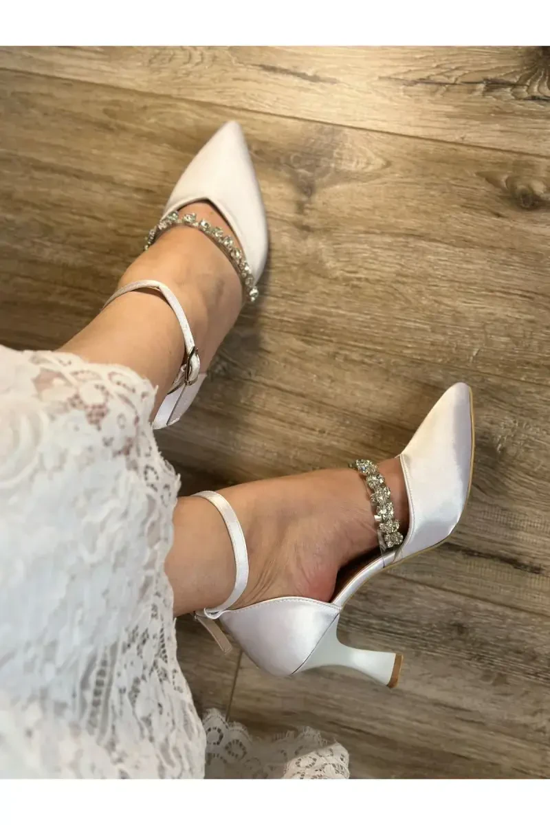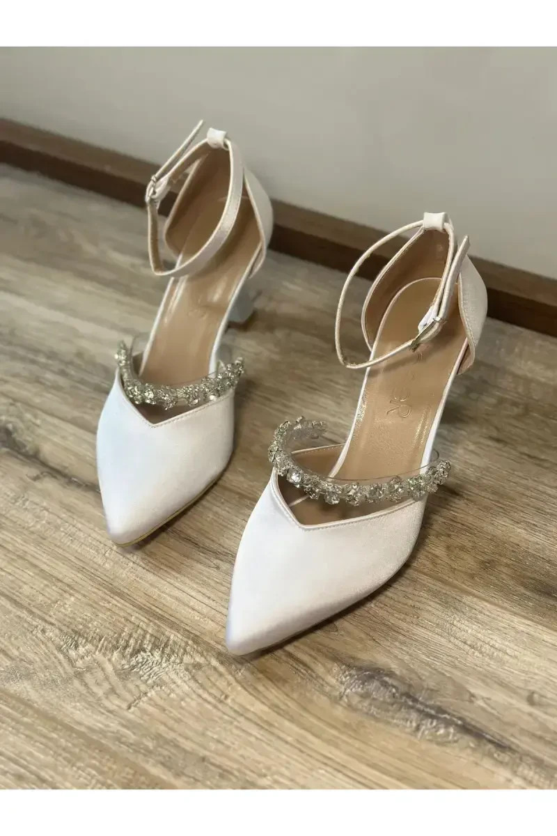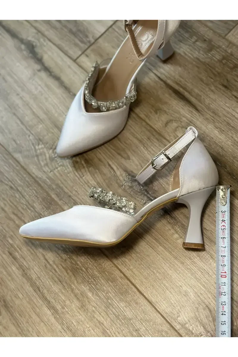 The Women's Mother-of-Pearl Off-White 7 Cm Stiletto Wedding Shoe with Stones is a perfect choice for your special days, adding elegance to your style. This shoe, which attracts attention with its elegant design and eye-catching details, will allow you to feel comfort and grace in every step.