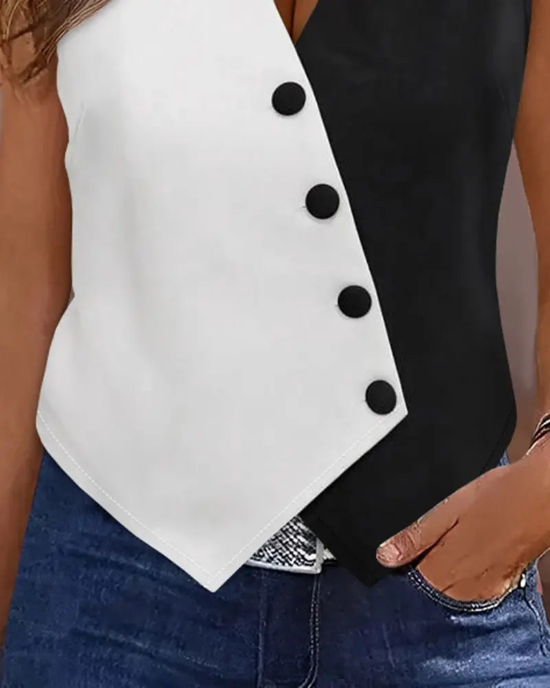 Kadın Sıfır Kol V Yakalı Düğmeli Blok Renkli Atlas Yelek