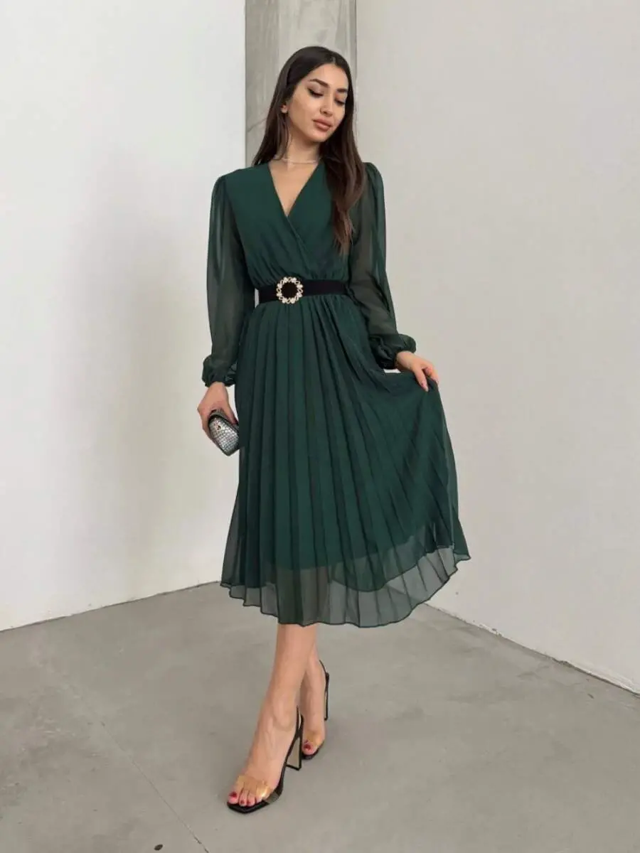 Kadın şifon kumaş astarlı kloş kesim kruvaze yaka midi boy elbise, zarafeti ve şıklığı bir araya getiren özel bir tasarımdır. Bu elbise, özel davetlerden günlük kullanıma kadar geniş bir yelpazede size eşlik edebilir. Hafif ve akıcı şifon kumaşı, gün boyu konfor sağlarken, kloş kesimi hareket özgürlüğünüzü kısıtlamaz. Kruvaze yaka detayı, elbiseye sofistike bir dokunuş katarken, midi boyu da hem modern hem de klasik bir görünüm sunar.İç kısmında bulunan astar, elbisenin vücuda daha iyi oturmasını ve şeffaflığı önlemesini sağlar. Astarlı yapısı sayesinde, elbisenin kalitesi ve duruşu daha da ön plana çıkar. Uzun kollu tasarımı, serin havalarda da şıklığınızdan ödün vermemenizi sağlar. Desensiz ve düz tasarımı, farklı aksesuarlar ve ayakkabılarla kolayca kombinlenebilmesine olanak tanır. İster topuklu ayakkabılarla şık bir kombin oluşturun, ister babetlerle daha rahat bir tarz yakalayın, bu elbise her zaman stilinizi tamamlayacaktır.Elbisenin kumaşının hafifliği, özellikle yaz aylarında tercih edilmesini sağlar. Şifon kumaşın nefes alabilir yapısı, sıcak havalarda terlemeyi önler ve gün boyu ferah kalmanıza yardımcı olur. Kloş kesimi, vücut hatlarını nazikçe vurgularken, aynı zamanda kusurları da ustaca gizler. Bu özelliği sayesinde, her vücut tipine uyum sağlayabilir ve kendinizi her zaman güzel hissetmenizi sağlar.Kruvaze yaka detayı, dekolteyi zarif bir şekilde ortaya çıkarır ve boynu daha uzun gösterir. Bu detay, elbiseye feminen bir hava katar ve sizi daha çekici kılar. Uzun kollu tasarımı, özellikle akşam davetlerinde ve serin havalarda hem şık hem de kullanışlı bir seçenektir. Kolların uzunluğu, kollarınızı daha ince göstermeye yardımcı olur ve genel görünümünüzü daha zarif hale getirir.Bu elbise, kokteyl partilerinden özel günlerinize kadar her türlü etkinlik için mükemmel bir seçimdir. Şıklığı ve konforu bir arada sunan bu tasarım, gardırobunuzun vazgeçilmez parçalarından biri olmaya adaydır. Kendi stilinizi yansıtmak ve her ortamda dikkat çekmek için bu elbiseyi tercih edebilirsiniz. Modelin ölçüleri (Boy: 165, Kg: 55, Göğüs: 90, Bel: 72, Kalça: 100) ve üzerindeki ürünün M/38 beden olması, size beden seçimi konusunda da fikir verebilir. Bu şık ve zarif elbiseyi hemen sipariş vererek, gardırobunuza yeni bir soluk getirin.
