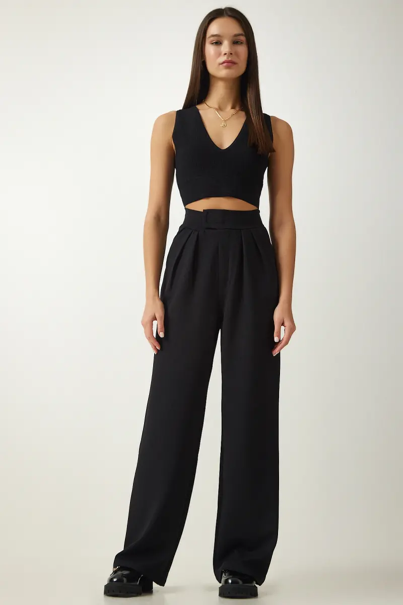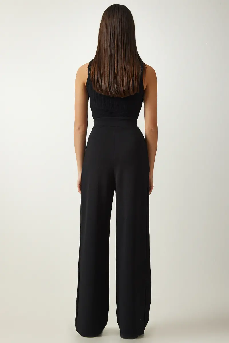 Bu ürün Trendyol tarafından gönderilecektir.Kampanya fiyatından satılmak üzere 5 adetten az stok bulunmaktadır.Bir ürün, birden fazla satıcı tarafından satılabilir. Birden fazla satıcı tarafından satışa sunulan ürünlerin satıcıları ürün için belirledikleri fiyata, satıcı puanlarına, teslimat statülerine, ürünlerdeki promosyonlara, kargonun bedava olup olmamasına ve ürünlerin hızlı teslimat ile teslim edilip edilememesine, ürünlerin stok ve kategorileri bilgilerine göre sıralanmaktadır.Bu üründen en fazla 10 adet sipariş verilebilir. 10 adedin üzerindeki siparişleri Trendyol iptal etme hakkını saklı tutar. Belirlenen bu limit kurumsal siparişlerde geçerli olmayıp, kurumsal siparişler için farklı limitler belirlenebilmektedir.15 gün içinde ücretsiz iade. Detaylı bilgi için [page="return_conditions"]tıklayın .Rahat kesimi ve şık tasarımıyla her ortamda dikkat çeken siyah palazzo pantolon, günlük kullanım için idealdirUzun boyu sayesinde bacakları olduğundan daha uzun ve zarif gösterirDokuma kumaş yapısı, dayanıklılığı ve konforu bir arada sunarPalazzo kalıbı, modern ve trend bir görünüm sağlartüm yaş gruplarına hitap eder%100 polyester karışımından oluşan materyal bileşeni, esneklik ve nefes alabilirlik sunarKolay bakım imkanı sağlayan yıkama talimatları ile pratik kullanım sağlarBoru paça tasarımı, klasik ve zamansız bir stil oluştururken düz deseniyle kolayca kombinlenebilirYüksek bel tasarımı sayesinde vücut hatlarını nazikçe sararak şık bir siluet oluşturur