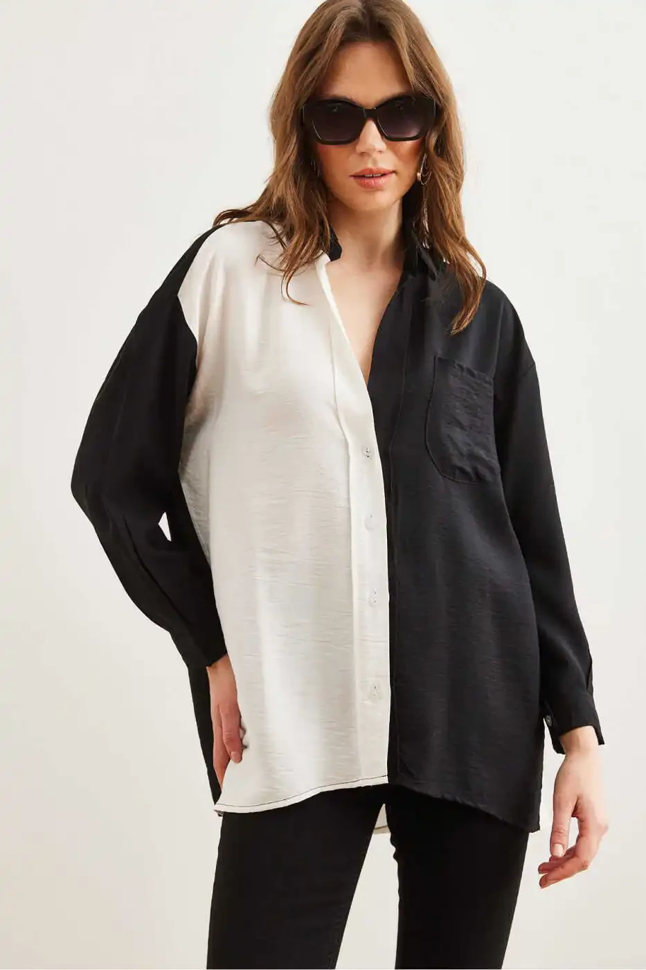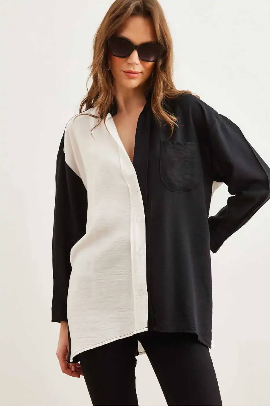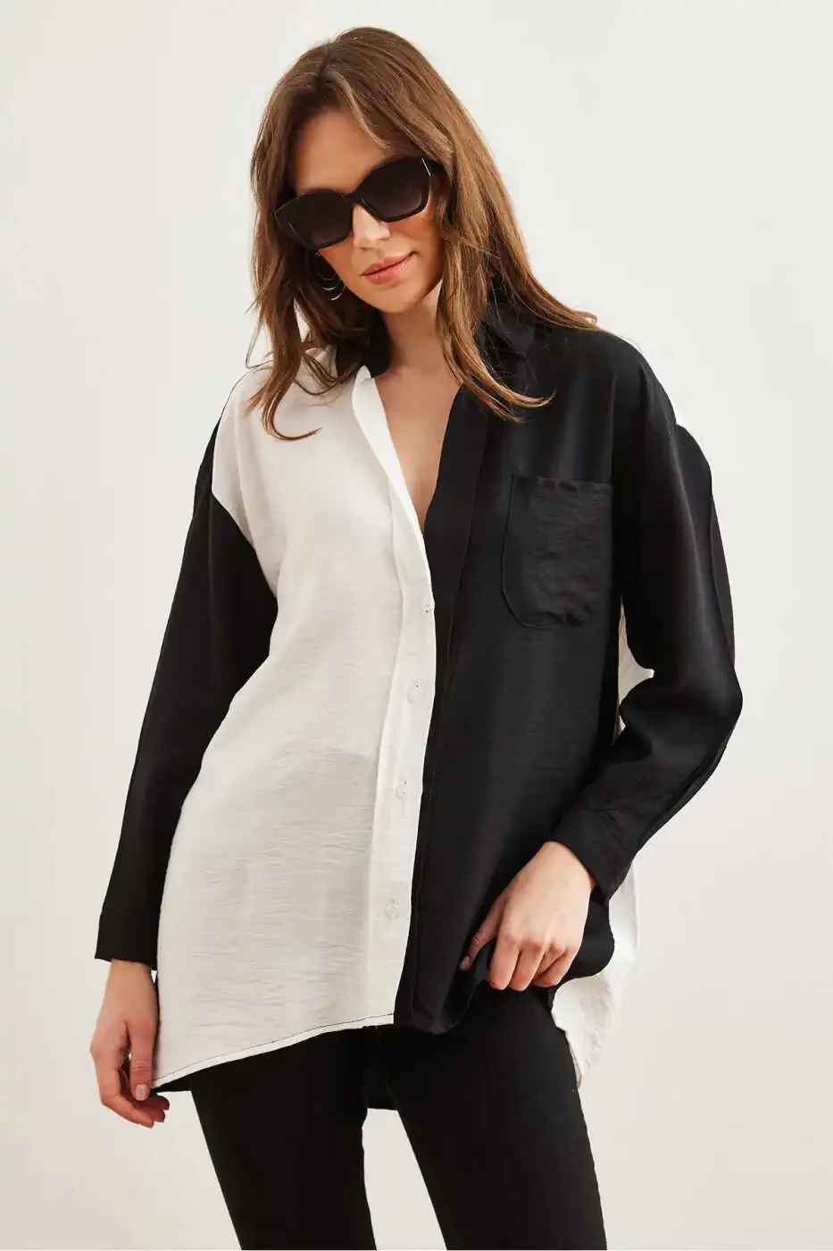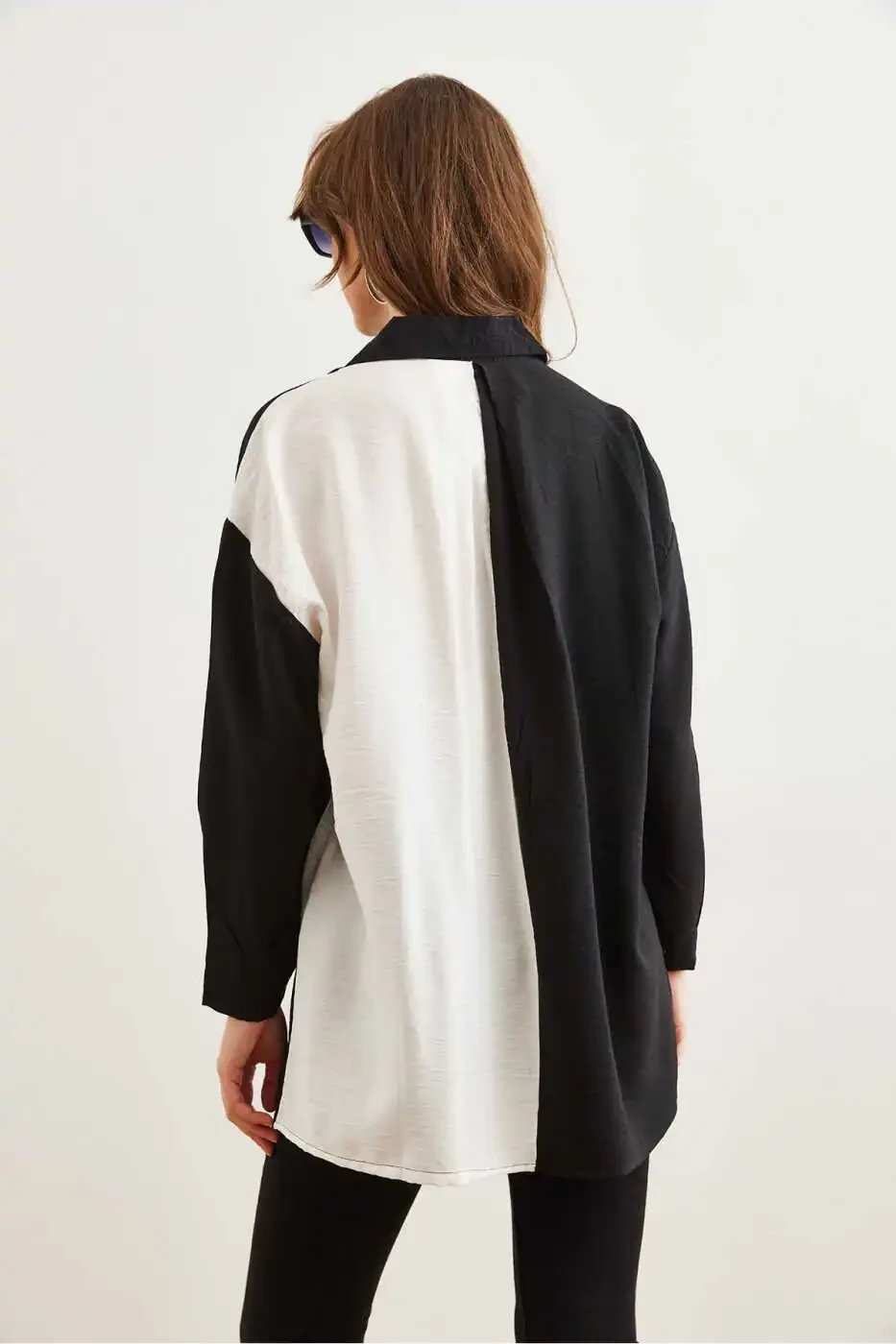 Women's Shirt, Oversized Shirt, Black and White Shirt, Color Block Shirt, Lilyum Shirt, Trendyol, Olalook