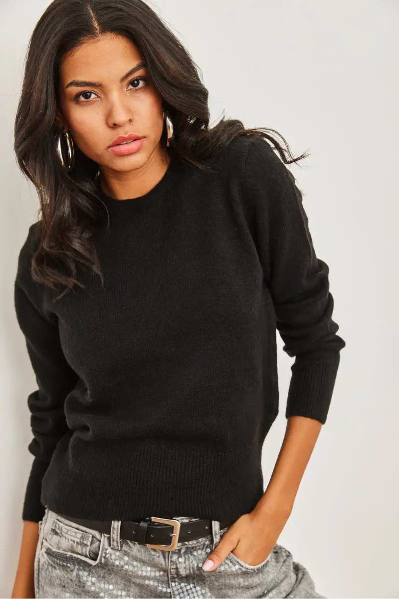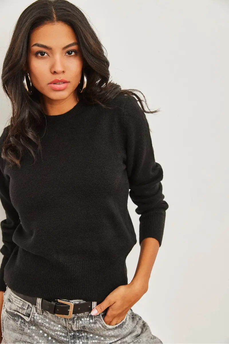 Kadın Siyah Bisiklet Yaka Yumuşak Dokulu Basic Triko Kazak KZK-19000845-Siyah