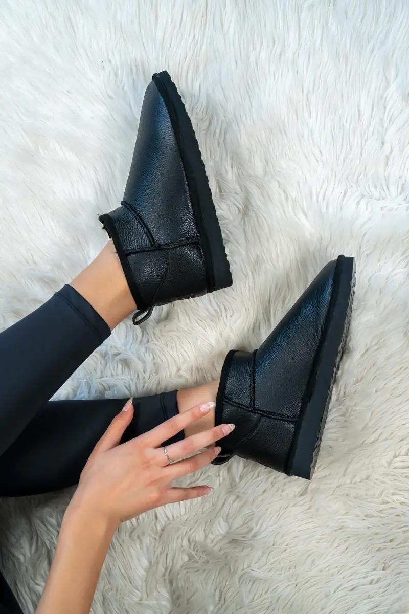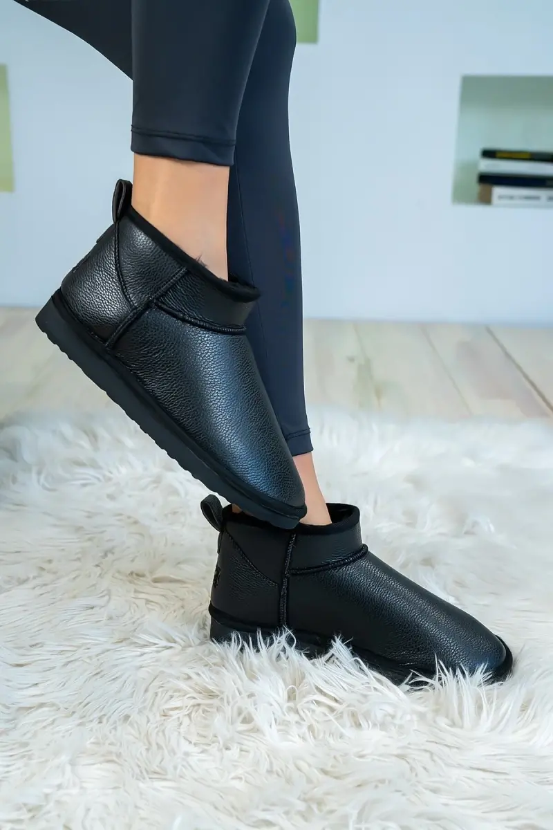 Kadın Siyah Cilt Ultra Mini Bot Içi Kürklü Model Suni Deri Bot-Siyah Cilt