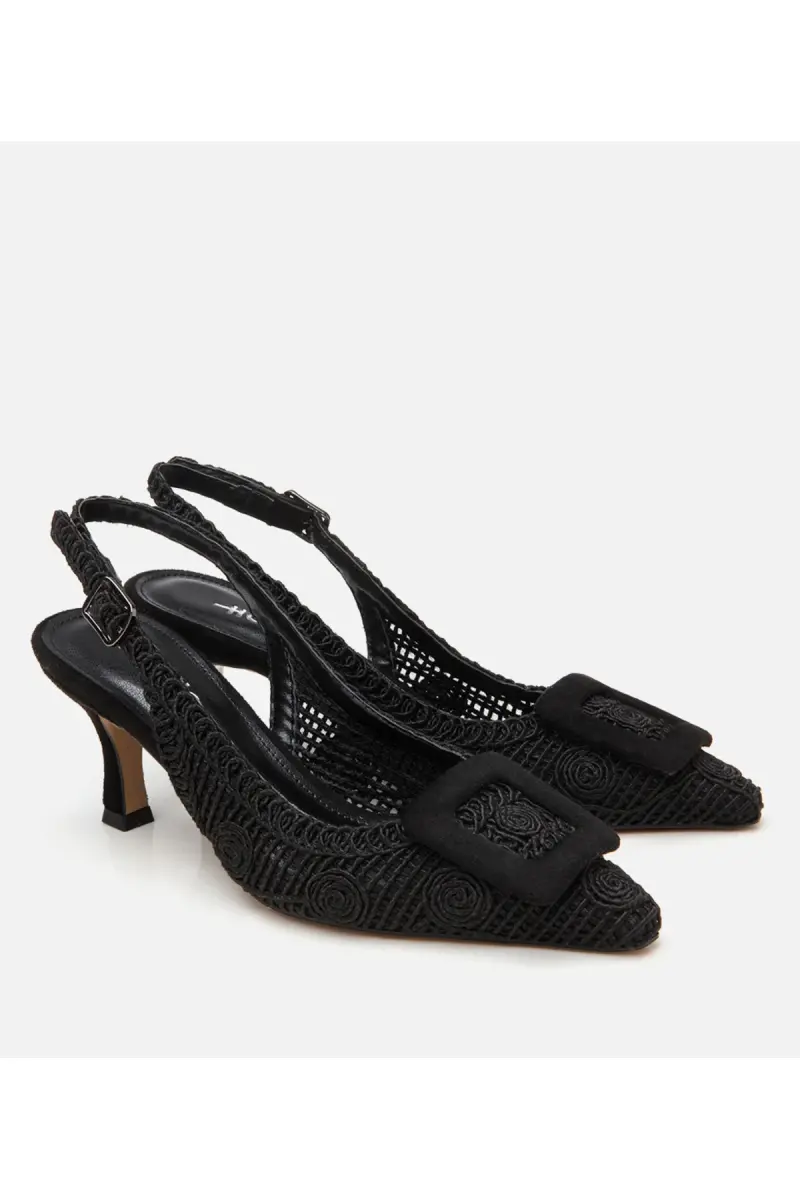 Siyah Desenli Arkası Açık Topuklu Ayakkabı | Şık ve Rahat