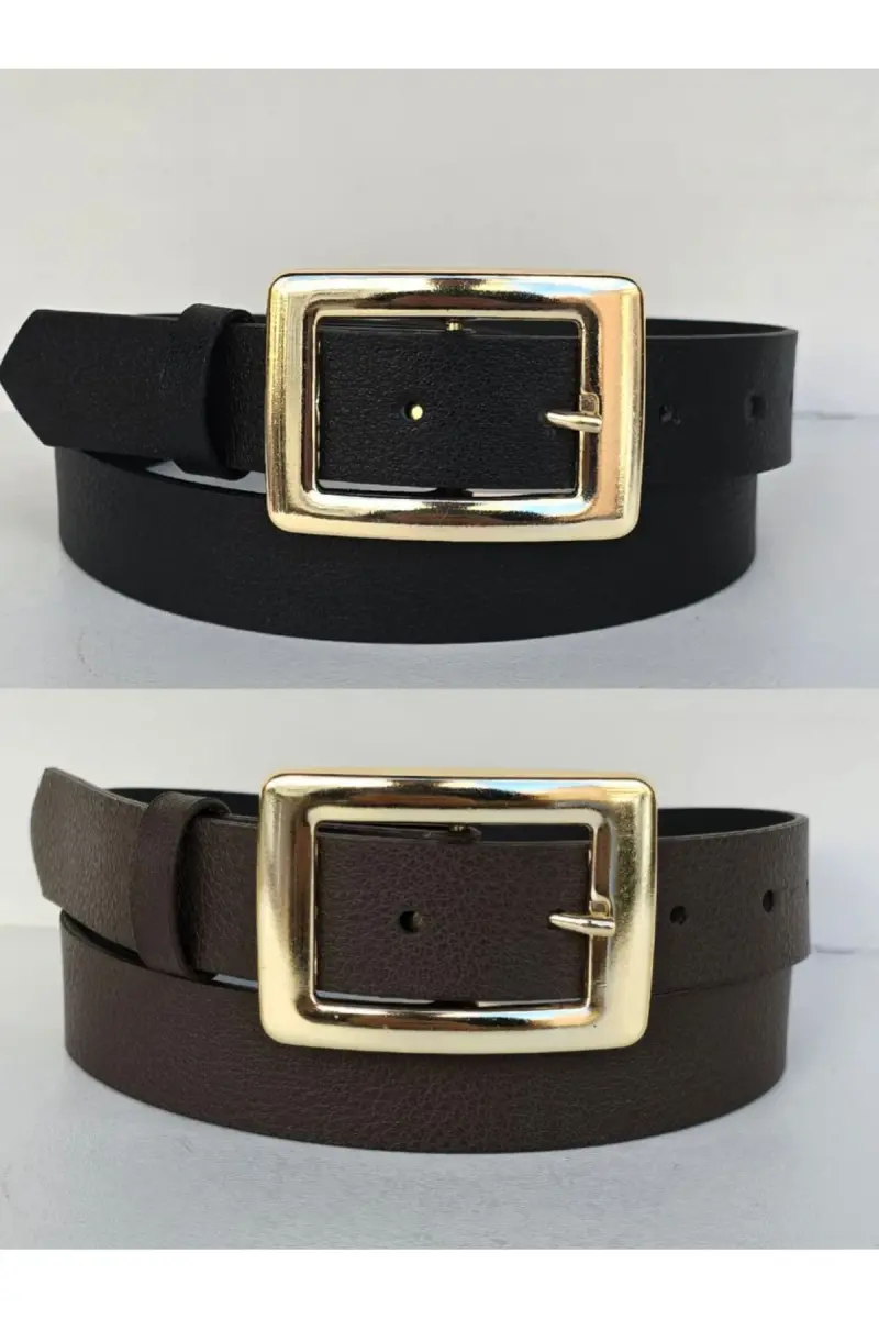 Kadın siyah-kahve Gold Tokalı 2'li set kemer-Siyah