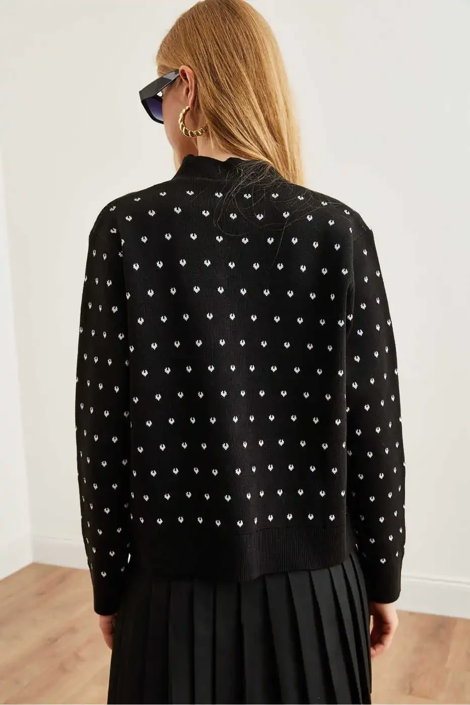Women's Knit Cardigan, Thick Band Knit Cardigan, Black Knit Cardigan, Heart Detail Knit Cardigan, Comfortable Knit Cardigan