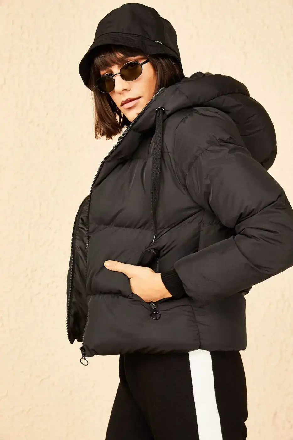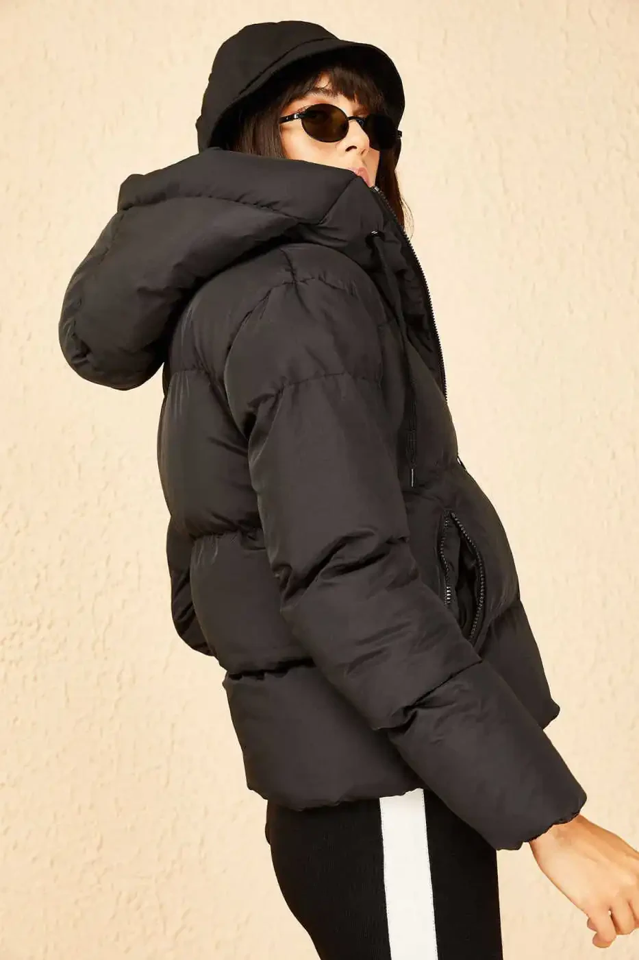 kadın mont, siyah mont, kapüşonlu mont, şişme mont, kışlık mont, 10141018, kadın giyim, mont modelleri