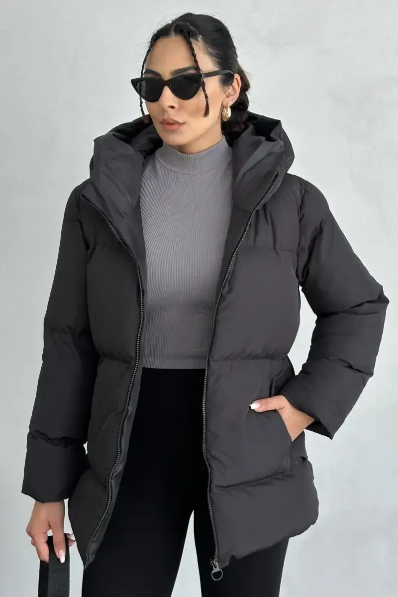 The Women's Black Hooded Puffer Jacket is the ideal choice for women who want to look stylish and warm in cold weather. If you are looking for a stylish solution against the winter cold, this jacket is perfect for you.