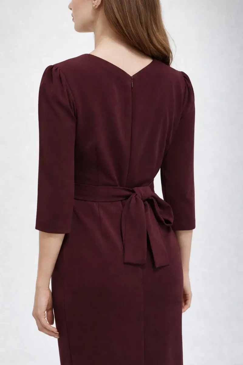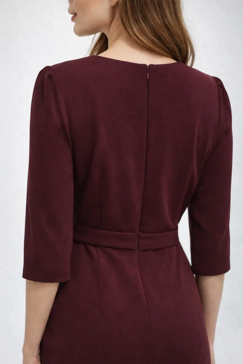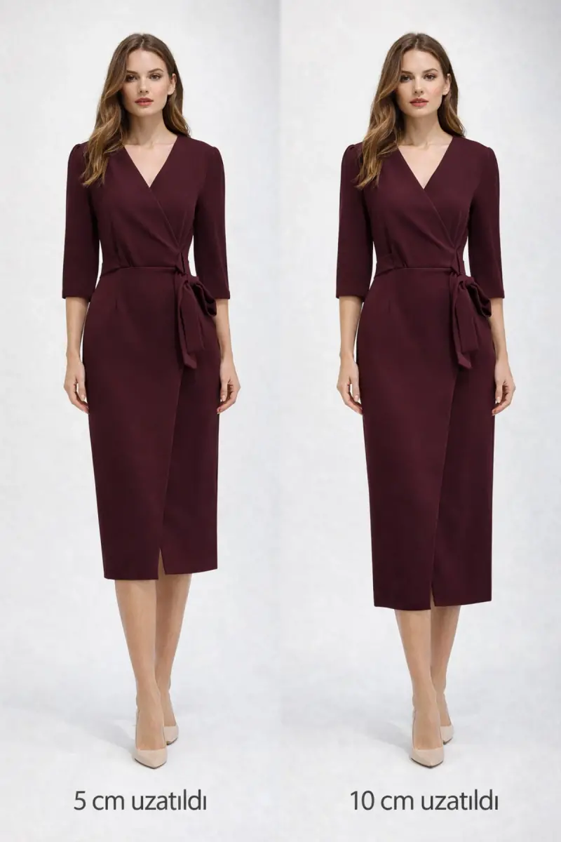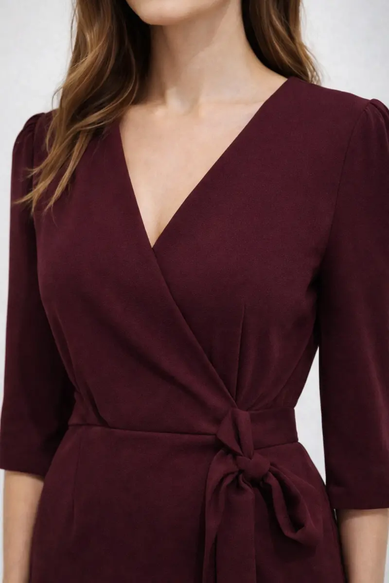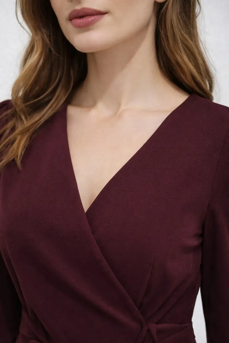Kadın Siyah Kruvaze Avelop Truvakar Krep Şık Elbise-Bordo