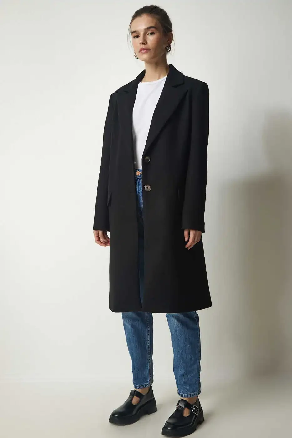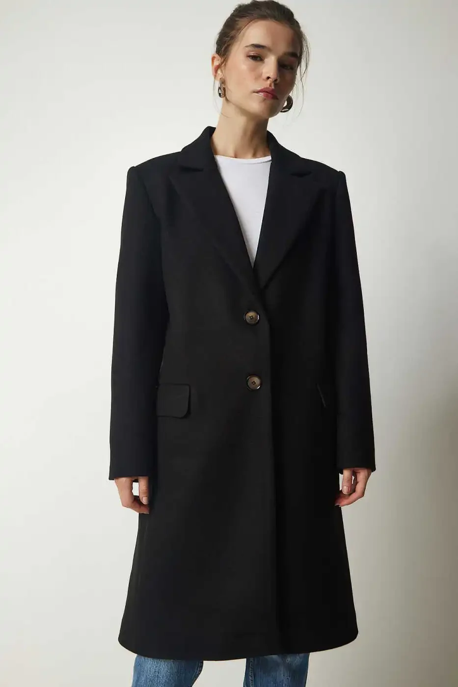 Черное двубортное кашемировое пальто | Женские модели пальто | Стильное и теплое | TO0011