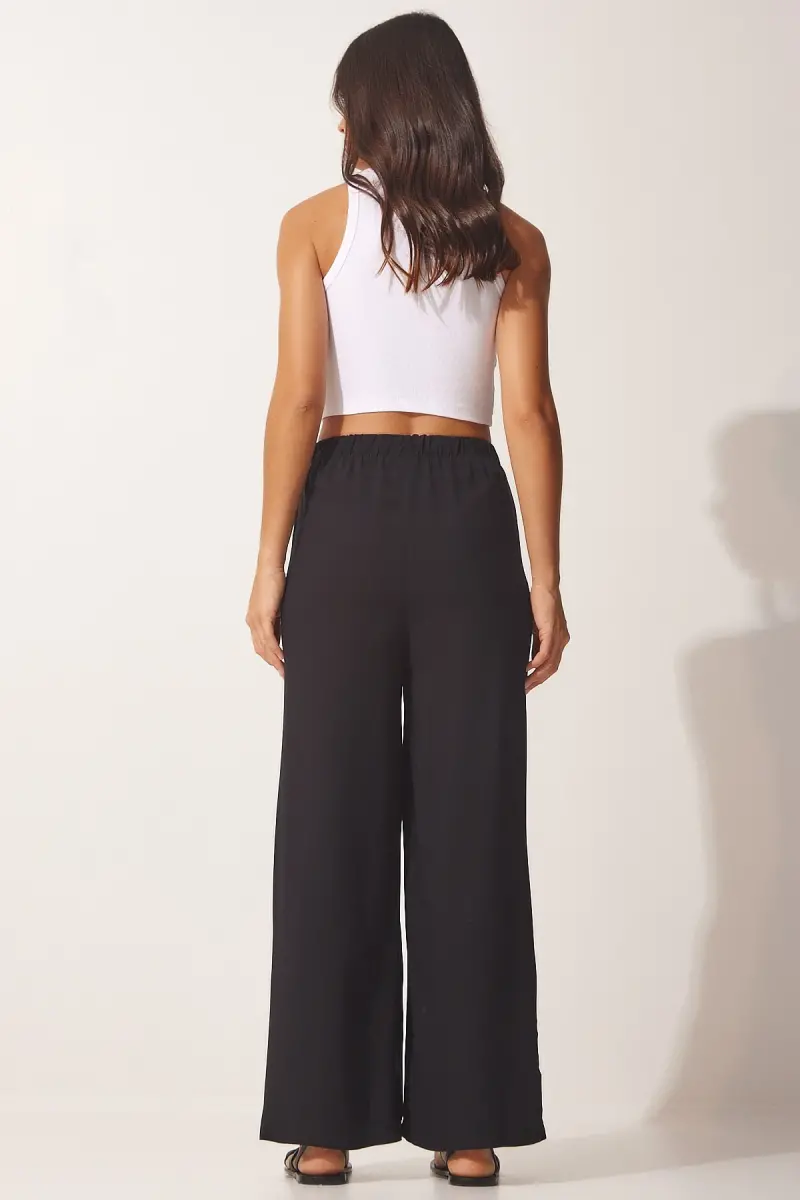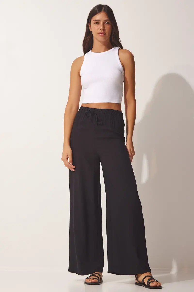 Kadın Siyah Pamuklu Viskon Palazzo Pantolon BV00076-Siyah