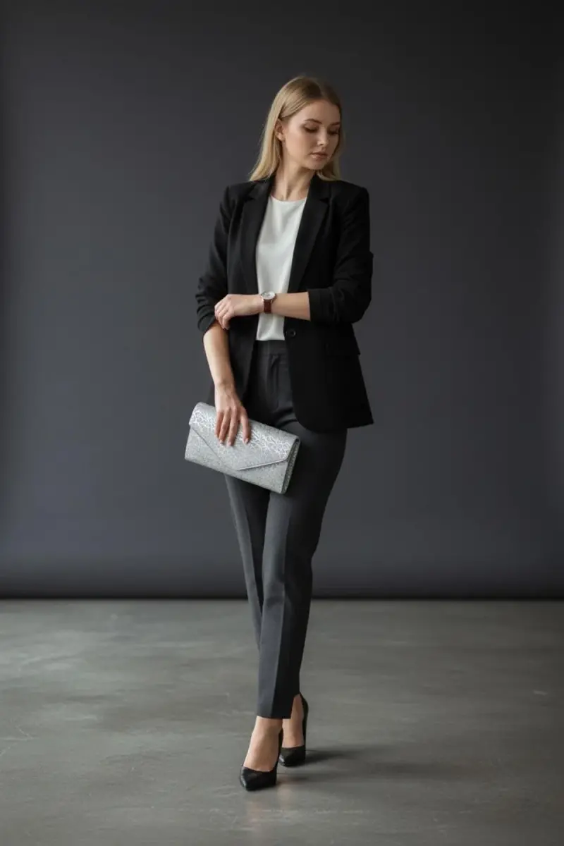 Kadın Siyah Rengi Portföy Çanta Zincirli-Gümüş Desenli