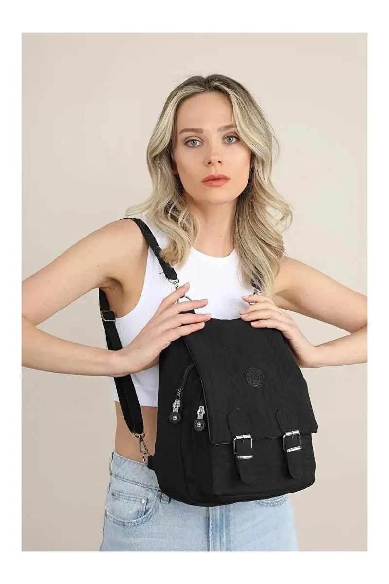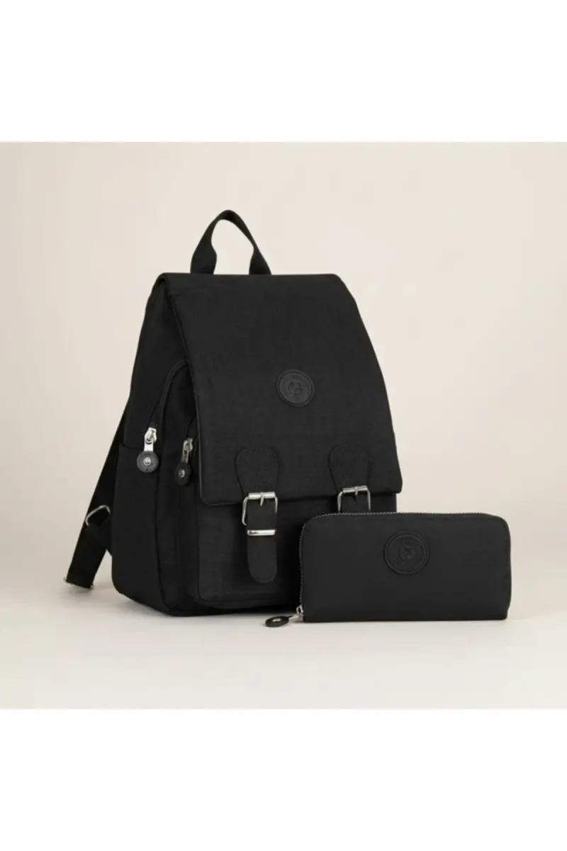 Kadın Siyah Renk Kipling Kumaş Kadın Omuz Ve Sırt Çantası Ve Cüzdan Set-Siyah Set
