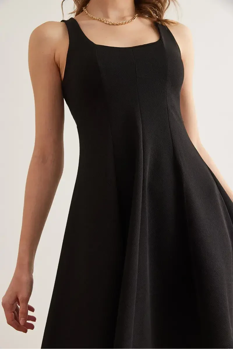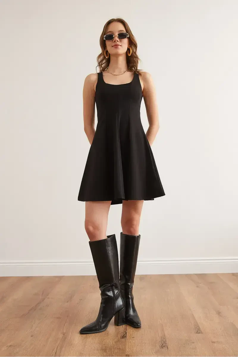 Kadın Siyah U Yaka Parçalı Trend Mini Kloş Elbise ile şıklığı ve rahatlığı bir arada yaşayın. Bu özel tasarım elbise, modern kesimi ve dikkat çekici detaylarıyla gardırobunuzun vazgeçilmezi olacak. İster özel bir davette, ister günlük kullanımda, her ortamda fark yaratmanızı sağlayacak. Elbisenin kloş etek kısmı hareket özgürlüğünüzü kısıtlamazken, U yaka tasarımı da zarif bir dokunuş katıyor. Parçalı detaylar, elbiseye dinamik bir hava verirken, siyahın asilliği her zaman ön planda. Yüksek kaliteli materyaller kullanılarak üretilen bu elbise, uzun ömürlü ve dayanıklıdır. Kumaşın nefes alabilen yapısı sayesinde gün boyu konforlu bir kullanım sunar. Ürünün Trendyol güvencesiyle sunulması, alışveriş deneyiminizi daha da güvenli hale getiriyor. Bu elbiseyle tarzınızı yansıtın ve her ortamda dikkatleri üzerinize çekin. Unutmayın, şıklık detaylarda gizlidir ve bu elbise size bu detayları sunmak için tasarlandı. Özel kumaş karışımı sayesinde hem şık hem de rahat olmanın keyfini çıkarın. Gardırobunuzun yeni favorisi olmaya aday bu elbiseyi kaçırmayın!