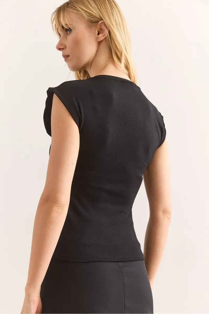 Kadın Siyah Yarasa Yumuşak Dokulu Esnek Bluz BLZ-19002877-Siyah