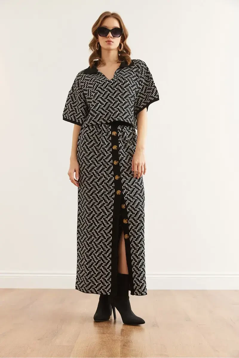 Kadın Siyah Zigzag Desenli Etekli Alt Üst Triko Takım, modern ve şık tasarımıyla dikkat çekiyor. Triko kumaşın yumuşak dokusu, gün boyu rahat bir kullanım sunarken, zigzag deseni takıma hareketli ve özgün bir görünüm kazandırıyor. Siyahın asaletini ve trikonun konforunu bir araya getiren bu takım, hem günlük şıklığınızı tamamlamak hem de özel anlarda fark yaratmak için ideal bir seçimdir. Etek ve üstten oluşan bu takım, ayrı ayrı kombinlenebilir olması sayesinde gardırobunuzdaki diğer parçalarla da kolayca uyum sağlayarak farklı stil alternatifleri oluşturmanıza imkan tanır. Triko kumaşın esnek yapısı, vücuda tam oturarak hoş bir siluet yaratırken, hareket özgürlüğünüzü kısıtlamaz. İster topuklu ayakkabılarla şık bir davete katılın, ister spor ayakkabılarla günlük bir kombini tamamlayın, bu triko takım her ortamda size eşlik edecektir. Üstelik, kaliteli triko materyali sayesinde uzun ömürlü bir kullanım sunar ve kolayca bakımı yapılabilir. Siyah renk, her zaman moda olan ve farklı renklerle kolayca kombinlenebilen bir seçenek olduğu için, bu takımı gardırobunuzun temel parçalarından biri olarak düşünebilirsiniz. Zincir detaylı bir kolye veya şık bir fularla tamamlayarak tarzınızı daha da kişiselleştirebilirsiniz. Bu takım, hem stil sahibi olmak isteyen kadınların hem de konforundan ödün vermek istemeyenlerin tercihi olacaktır. Şıklığı ve rahatlığı bir arada sunan Kadın Siyah Zigzag Desenli Etekli Alt Üst Triko Takım ile her zaman göz alıcı ve kendinden emin hissedin.