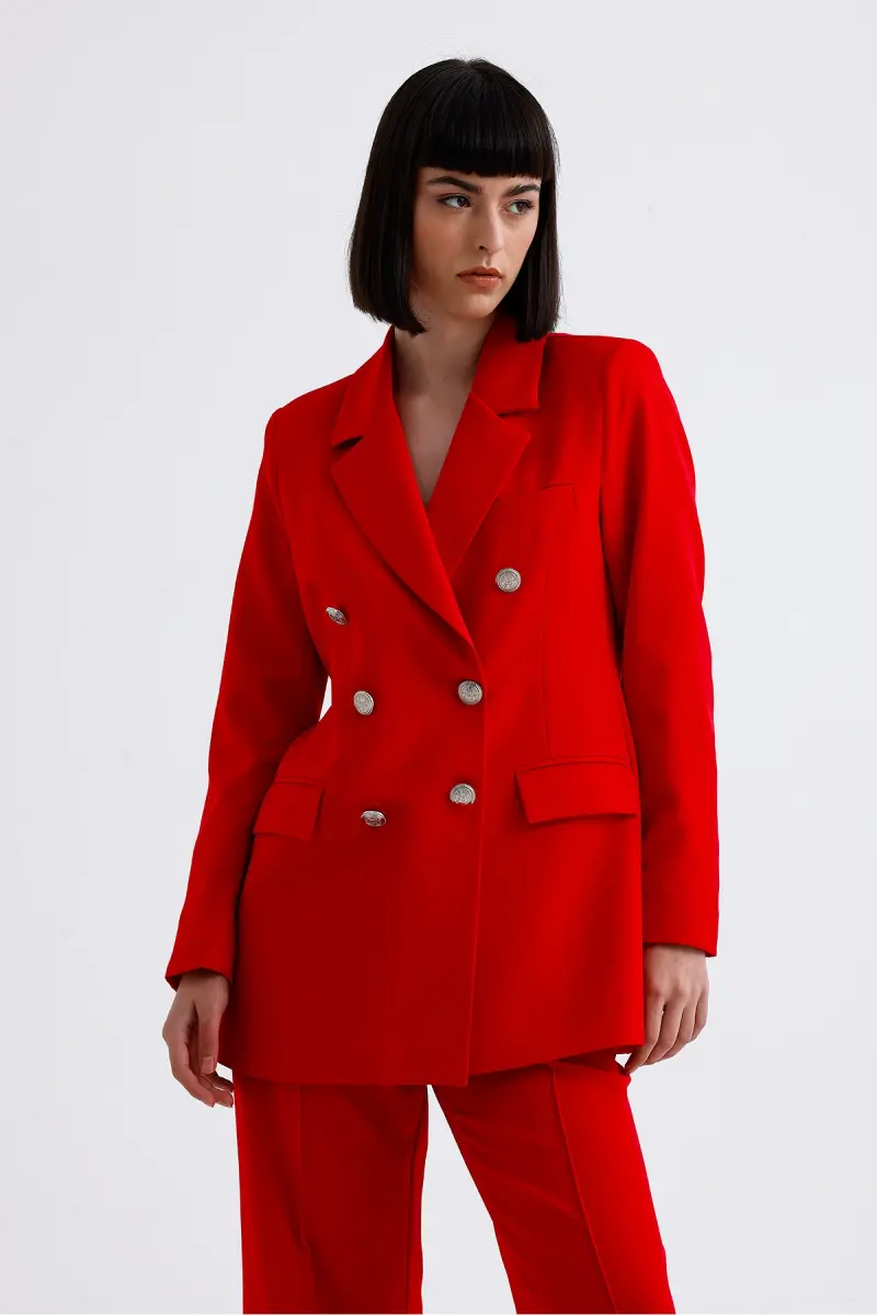Kadın Takım Elbise Ceket ve Pantolon TK34239, modern ve şık tasarımıyla öne çıkan, kırmızı rengin enerjisini yansıtan özel bir parçadır. Hem günlük kullanımda hem de özel davetlerde rahatlıkla tercih edebileceğiniz bu takım, stilinizi tamamlayacak ve size özgüven katacaktır. Ceket, vücuda oturan kesimi ve zarif detaylarıyla dikkat çekerken, pantolon ise konforlu yapısıyla gün boyu rahat etmenizi sağlar. Kırmızı rengin canlılığı, kombininize enerji katarken, takımın şık tasarımı, her ortamda dikkat çekmenizi sağlar. Bu takım elbise, hem profesyonel hem de sosyal yaşamınızda tarzınızı en iyi şekilde yansıtmanıza olanak tanır. Yüksek kaliteli kumaşı sayesinde uzun ömürlü bir kullanım sunar ve kolayca kombinlenebilir olması, gardırobunuzun en sevilen parçalarından biri olmasını sağlar. İster topuklu ayakkabılarla şık bir görünüm elde edin, ister spor ayakkabılarla daha rahat bir tarz yaratın, bu takım elbise her durumda stilinizi konuşturmanıza yardımcı olacaktır. Kırmızı rengin cesareti ve takımın modern kesimi, sizi her ortamda öne çıkaracak ve tarzınızla fark yaratmanızı sağlayacaktır. Kadın Takım Elbise Ceket ve Pantolon TK34239, sadece bir kıyafet değil, aynı zamanda bir duruştur. Kendinizi özel hissetmek ve stilinizi en iyi şekilde yansıtmak için bu takımı tercih edebilirsiniz.