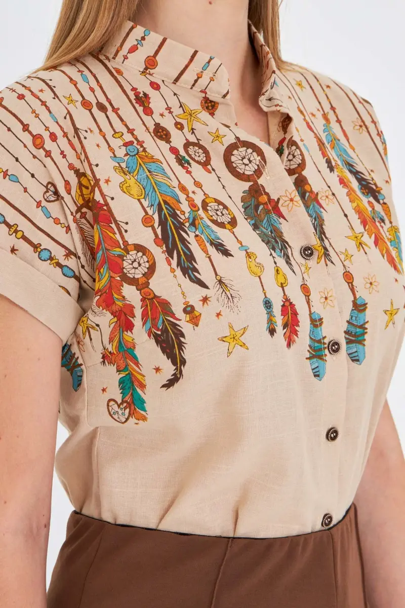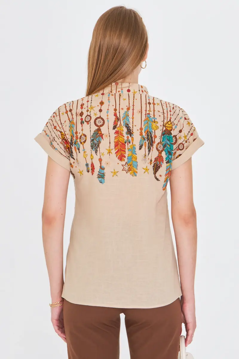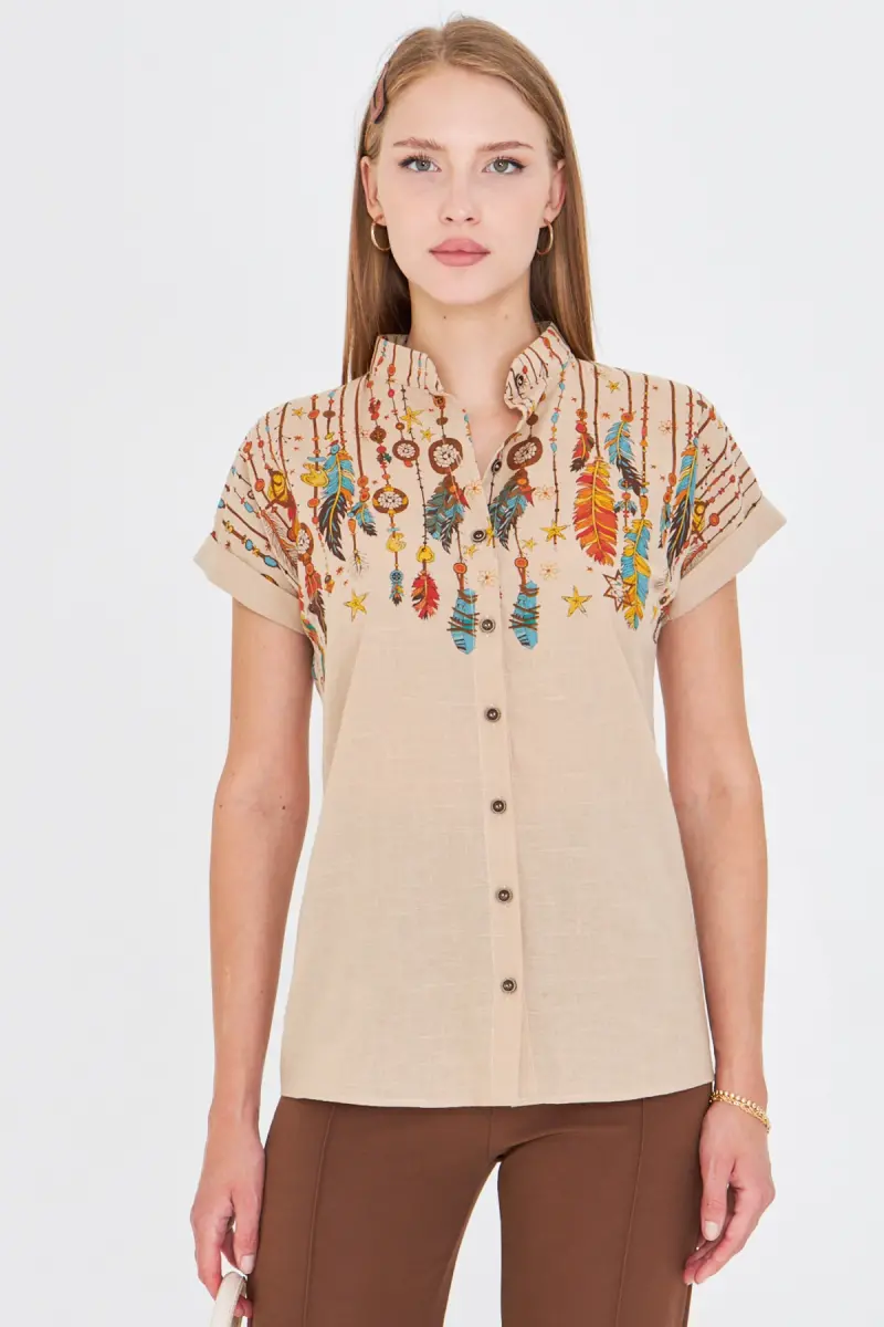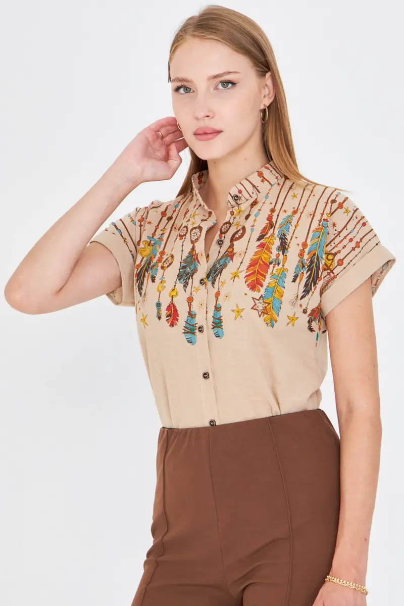Kadın Taş Hakim Yaka Kısa Kollu Gömlek ARM-25Y001040-Taş