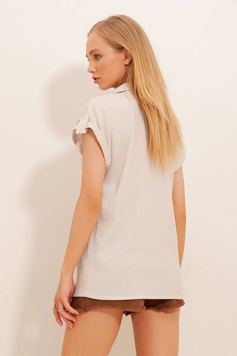 Bu ürün Trendyol tarafından gönderilecektir.Kampanya fiyatından satılmak üzere 10 adetten fazla stok sunulmuştur.Bir ürün, birden fazla satıcı tarafından satılabilir. Birden fazla satıcı tarafından satışa sunulan ürünlerin satıcıları ürün için belirledikleri fiyata, satıcı puanlarına, teslimat statülerine, ürünlerdeki promosyonlara, kargonun bedava olup olmamasına ve ürünlerin hızlı teslimat ile teslim edilip edilememesine, ürünlerin stok ve kategorileri bilgilerine göre sıralanmaktadır.Bu üründen en fazla 10 adet sipariş verilebilir. 10 adedin üzerindeki siparişleri Trendyol iptal etme hakkını saklı tutar. Belirlenen bu limit kurumsal siparişlerde geçerli olmayıp, kurumsal siparişler için farklı limitler belirlenebilmektedir.15 gün içinde ücretsiz iade. Detaylı bilgi için [page="return_conditions"]tıklayın .%70 Pamuk %30 PolyesterÜrün Boyu: 60 Cm Kol Boyu: 10 Cm En Boyu: 60 CmManşetli Cool Tasarımı Ve Klasik Kesimli Gömlek Modeli İle Tam Bir Zerafet Örneği Olan Kullanışlı Düğmeleri Ve Romantik Yakasıyla Stil Sahibi, Bahar Ve Yaz Aylarında Hem Günlük Hem De Klasik Olarak Tamamlayabileceğiniz, Gömlek Modasının En Aranan Parçalarından Alaçatı Stili Manşetli Duble Kısa Kollu Dokulu Gömlek Sizlerle!Numune Bedeni: S/36/1Modelin Ölçüleri: Boy: 1.70, Göğüs: 80, Bel: 58, Kalça: 89, Beden: S/36/1Stüdyo Çekimlerinde Renkler Işık Farklılığından Dolayı Değişiklik Gösterebilir.