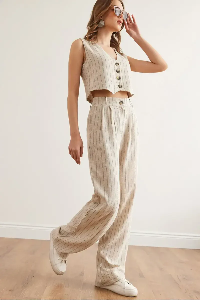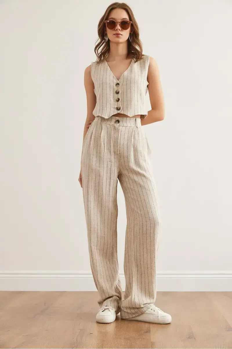 Şıklığı ve rahatlığı bir araya getiren Kadın Taş Siyah Üst Yelek Alt Cepli Pantolon Çizgi takımı ile tanışın! Olalook official güvencesiyle sunulan bu özel tasarım, modern kadının gardırobunda mutlaka bulunması gereken bir parça. İster günlük kullanımda ister özel bir davette, her ortamda fark yaratmanızı sağlayacak bu kombin, hem şık hem de konforlu bir deneyim sunuyor.Üst yelek, taş renginin zarafetiyle siyahın asaletini birleştirerek, her tarza kolayca uyum sağlıyor. Yeleğin modern kesimi, vücut hatlarınızı zarifçe vurgularken, alt cepli pantolon ise hem şık hem de kullanışlı bir detay sunuyor. Pantolonun çizgi deseni, kombine hareket katarken, farklı üstlerle de kolayca kombinlenebilme özelliği sayesinde gardırobunuzun vazgeçilmezi olacak.Bu takım, çoklu satıcı avantajıyla sunulmaktadır. Farklı satıcıların sunduğu fiyatları, puanları, teslimat koşullarını ve promosyonları karşılaştırarak, sizin için en uygun seçeneği belirleyebilirsiniz. Ürünün stok durumu ve hızlı teslimat imkanı da göz önünde bulundurularak, siparişinizi güvenle tamamlayabilirsiniz.Kadın Taş Siyah Üst Yelek Alt Cepli Pantolon Çizgi takımı, sadece şık bir görünüm sunmakla kalmıyor, aynı zamanda kaliteli malzeme seçimiyle de öne çıkıyor. %85 Viskon ve %15 Keten karışımı kumaşı sayesinde, gün boyu rahat ve ferah bir kullanım deneyimi yaşarsınız. Ketenin doğal dokusu, cildinize nefes aldırırken, viskonun yumuşaklığı ise konforunuzu artırır. Bu sayede, hem şık görünür hem de gün boyu rahat hissedersiniz.Trendyol güvencesiyle sunulan bu ürün, en fazla 10 adet sipariş edilebilir. Belirlenen bu limit, bireysel kullanıcıların ihtiyaçlarını karşılamaya yönelik olup, kurumsal siparişler için farklı limitler belirlenmektedir. Siparişinizden memnun kalmazsanız, 15 gün içinde ücretsiz iade imkanından faydalanabilirsiniz. İade koşulları hakkında detaylı bilgi almak için ilgili sayfayı ziyaret edebilirsiniz.Bu şık ve kullanışlı takım, gardırobunuzun en sevilen parçalarından biri olmaya aday. Kadın Taş Siyah Üst Yelek Alt Cepli Pantolon Çizgi takımı ile hem şıklığınızı konuşturun hem de gün boyu rahatlığın tadını çıkarın. Hemen sipariş verin ve bu benzersiz deneyimi yaşayın!