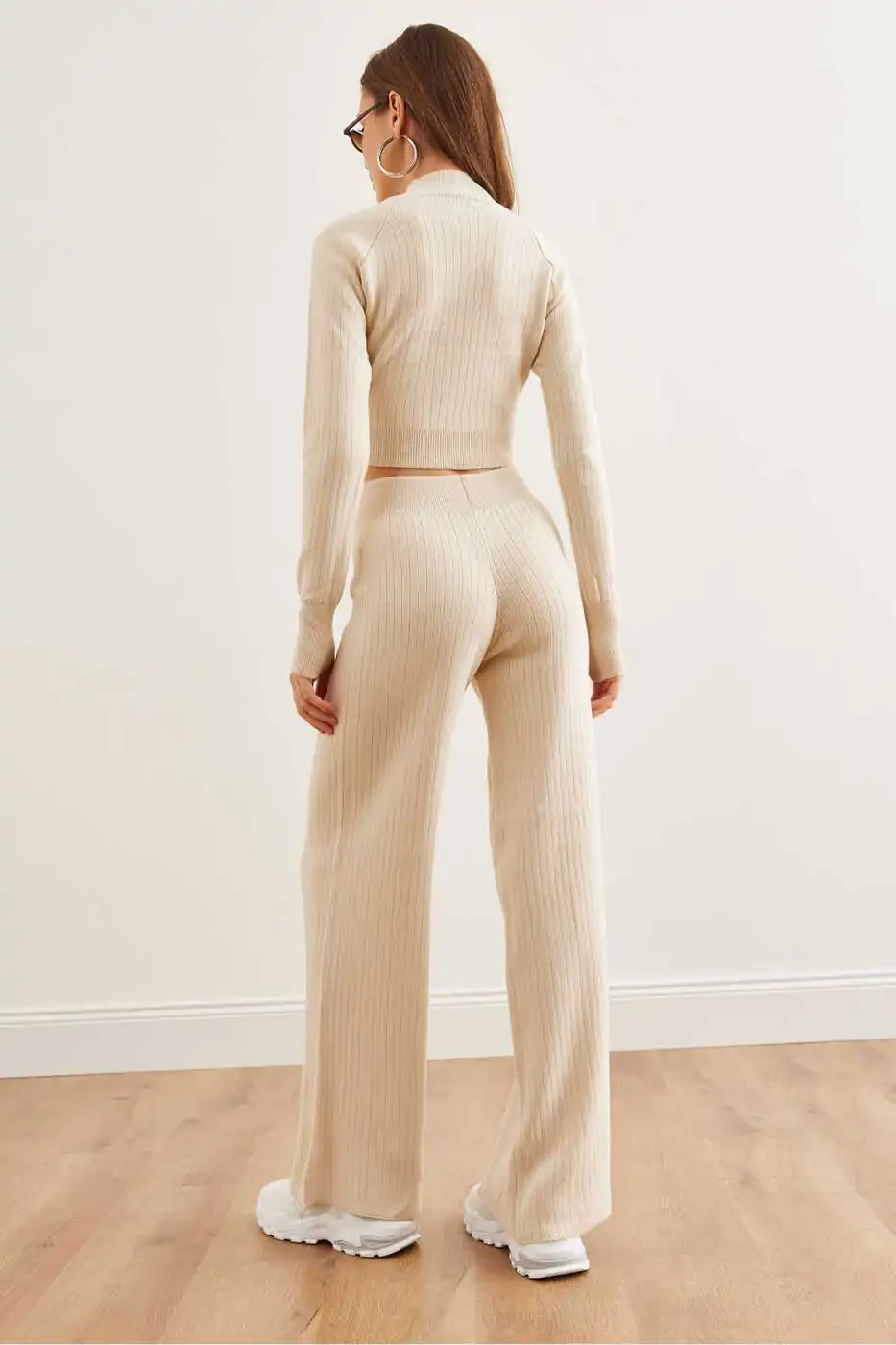 Ayollar uchun toshli yuqori barmoqli kozok va shim kiyim to'plami (TKM-19000313) | Trendyol