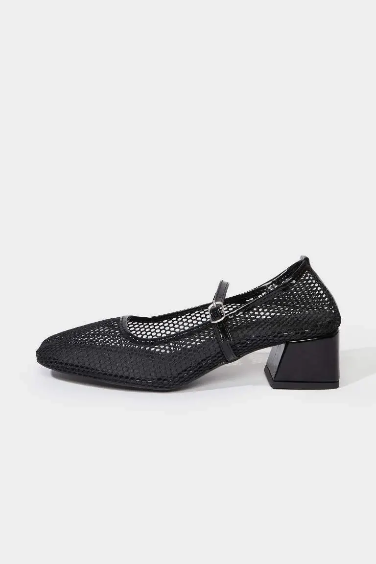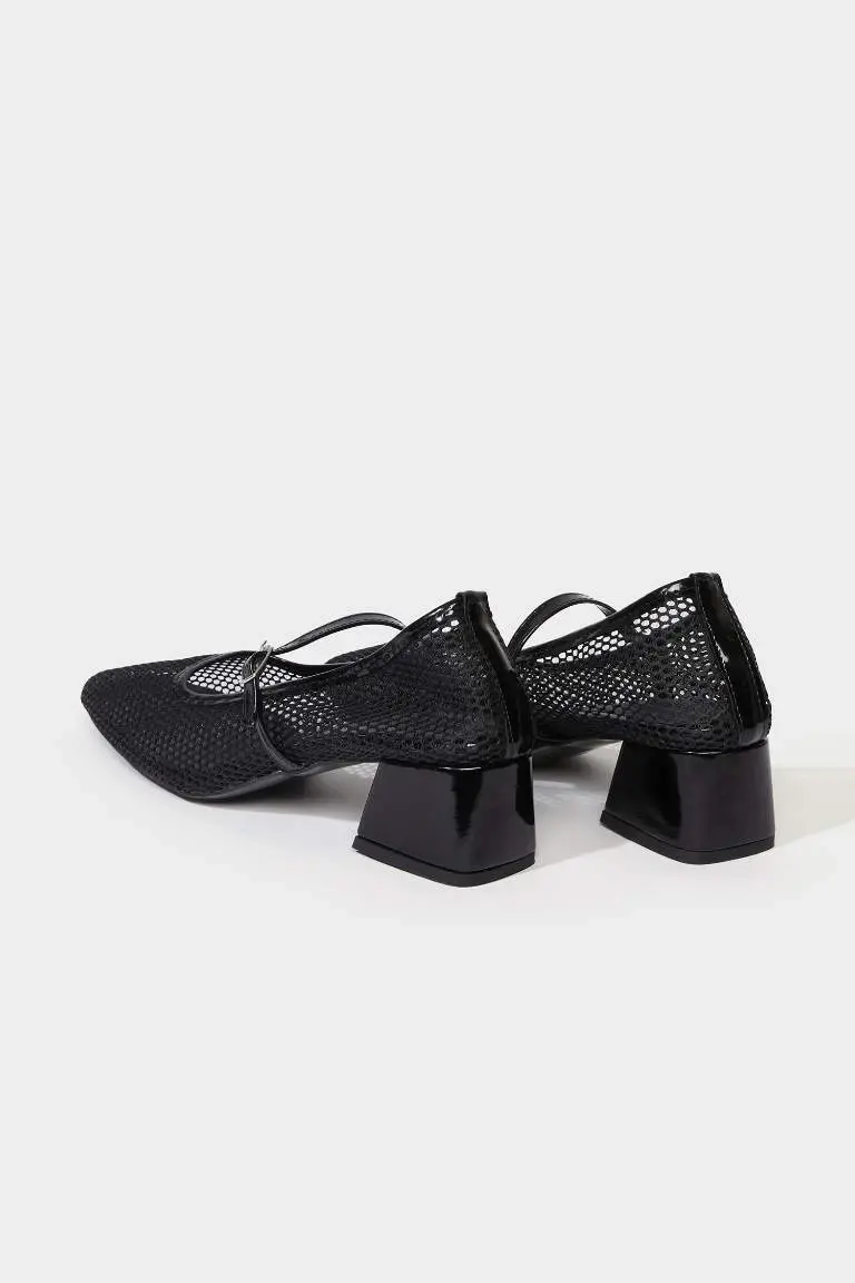 Kadın Tek Bantlı Yüksek Taban Topuklu Ayakkabı-Siyah