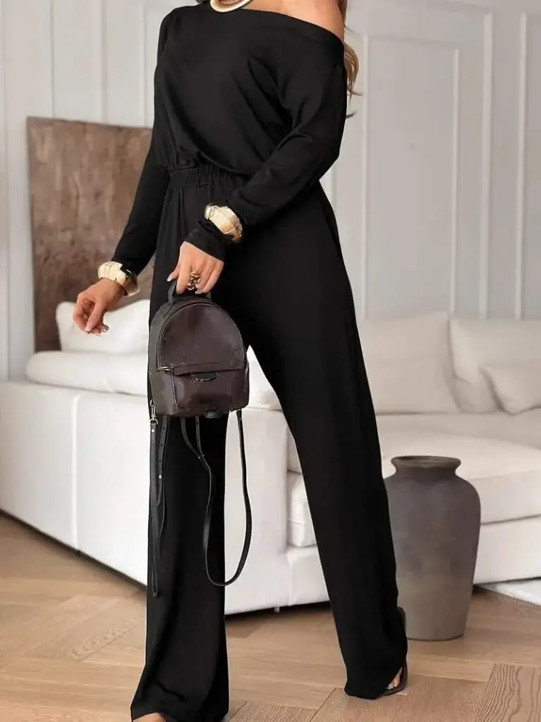 Kadın Tek Omuzdan Açık Uzun Kollu Belden Bağcıklı Uzun Viskon Iki Iplik Tulum