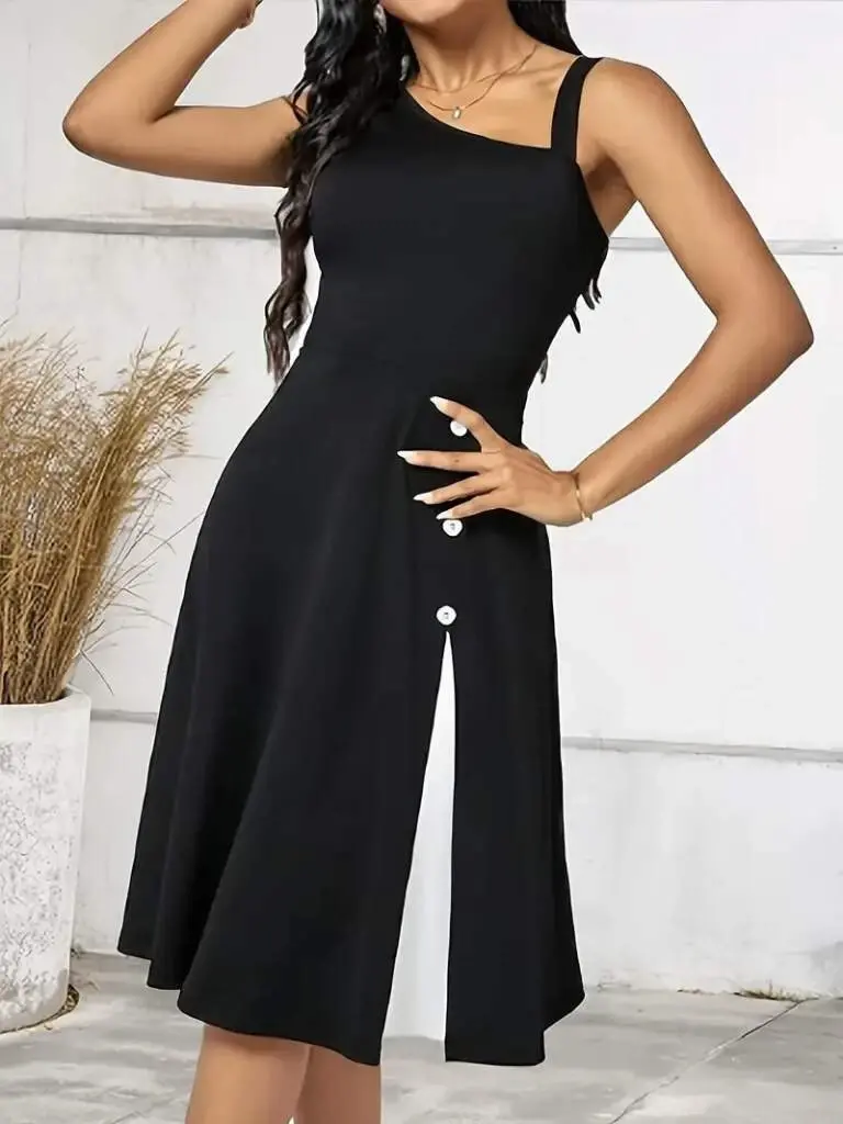 Kadın Tek Omuzu Şerit Detaylı Sıfır Kol Yandan Düğme Detaylı Janjan Krep Elbise ile şıklığı ve rahatlığı bir arada yaşayın. Bu özel tasarım elbise, modern ve zarif görünümüyle her ortamda dikkat çekmenizi sağlayacak. Tek omuz detayı, feminenliğinizi ön plana çıkarırken, şerit detayları elbiseye hareket ve dinamizm katıyor. Sıfır kol tasarımı, özellikle sıcak havalarda serin ve rahat bir kullanım sunarken, yandan düğme detayları elbiseye özgün bir dokunuş katıyor.Janjan krep kumaşın hafif ve akıcı yapısı, gün boyu konforlu bir kullanım sağlarken, aynı zamanda şık bir görünüm sunar. Kumaşın dokusu, elbiseye zarif bir parlaklık ve hareketlilik kazandırır. Elbisenin kesimi, vücut hatlarınızı nazikçe vurgulayarak, hoş bir siluet oluşturur.Bu elbise, özel davetlerden günlük kullanıma kadar geniş bir yelpazede tercih edilebilir. Topuklu ayakkabılarla kombinleyerek şık bir gece görünümü elde edebilir, sandaletlerle kombinleyerek daha rahat ve günlük bir tarz yaratabilirsiniz. Aksesuar seçimiyle de farklı tarzlara uyum sağlayabilen bu elbise, gardırobunuzun vazgeçilmez parçalarından biri olacak.Modelin Ölçüleri: Boy: 165 cm, Kilo: 55 kg, Göğüs: 90 cm, Bel: 72 cm, Kalça: 100 cm. Model üzerindeki beden M/38'dir. Bu bilgiler, size beden seçimi konusunda yardımcı olacaktır. Elbisenin kalıbı, rahat bir kullanım sunarken, aynı zamanda vücut hatlarınızı güzel bir şekilde ortaya çıkarır.Şıklığı ve rahatlığı bir arada arayan kadınlar için ideal bir seçenek olan Kadın Tek Omuzu Şerit Detaylı Sıfır Kol Yandan Düğme Detaylı Janjan Krep Elbise, her zaman ve her yerde stilinizi konuşturmanızı sağlayacak. Özel tasarımı ve kaliteli kumaşıyla uzun yıllar boyunca keyifle kullanabileceğiniz bu elbise, gardırobunuzun en sevilen parçalarından biri olacak.